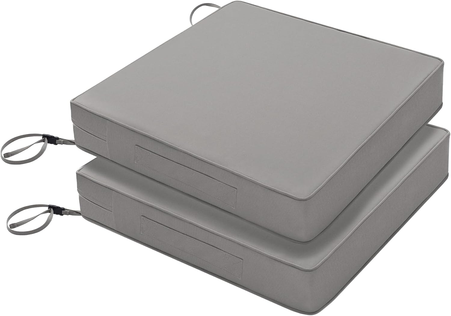 Favoyard Patio Chair Cushions 18 x 18 x 3 Inch Waterproof Outdoor Seat Cushions for Patio Furniture 3-Year Color Fastness Garden Sofa Couch Chair Pads with Handle & Adjustable Straps Set of 2, Grey
