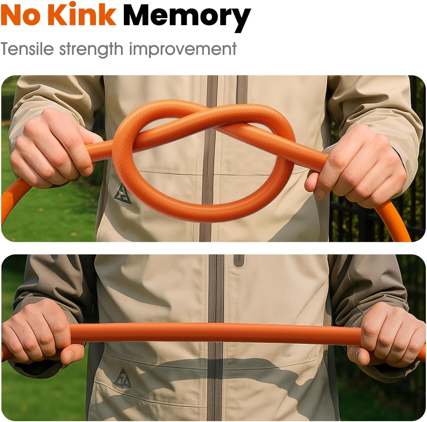 - ANTI-KINK TECHNOLOGY: The fantastic flexible material allows the water hose to uncoil and lay flat as soon as it is used, and it snaps back into shape to fight kinks as you drag it across the lawn. It also features an industrial technology upgraded 360-degree swivel fitting, providing you with an enhanced experience of kink resistance.