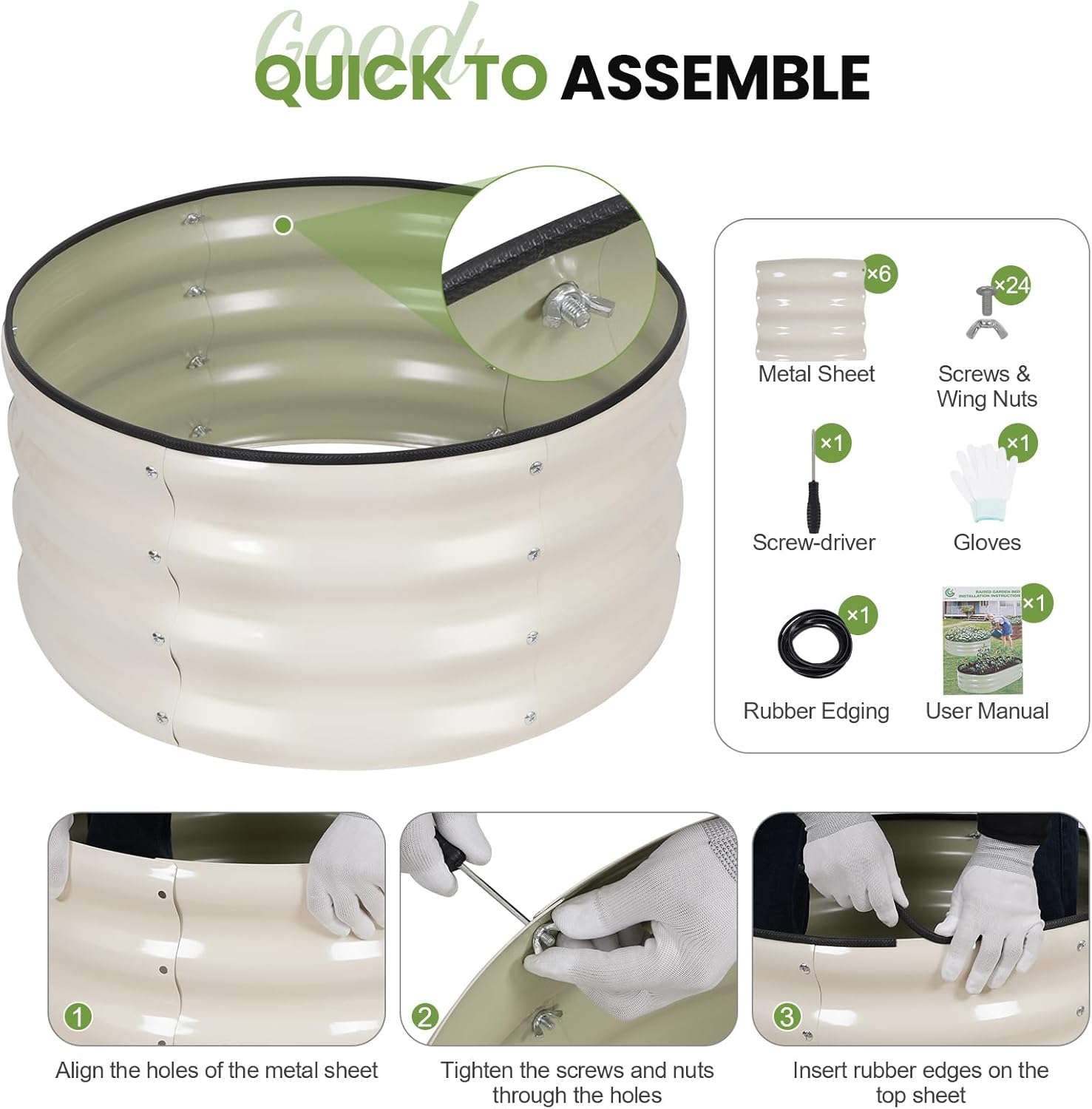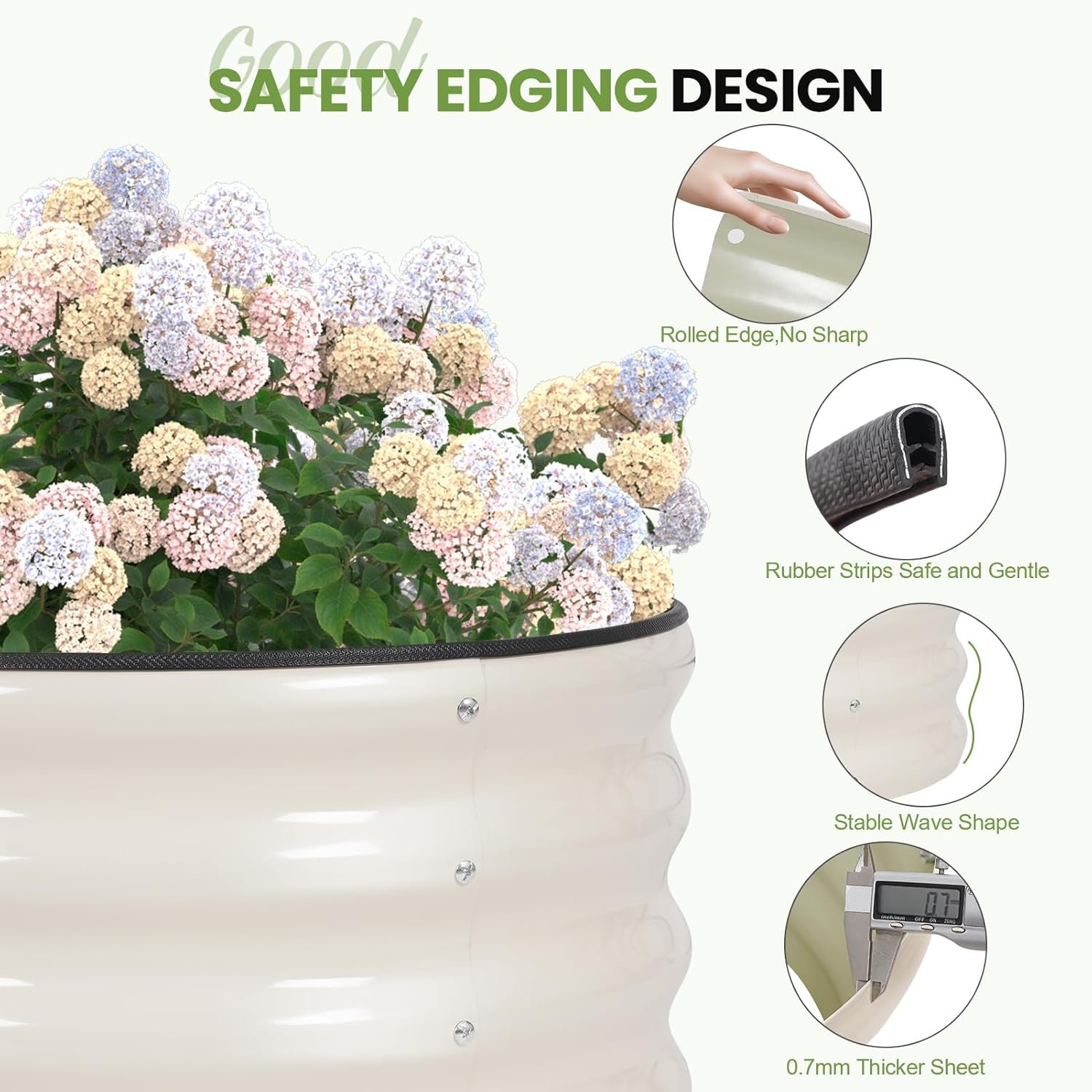 - 【Safe Edge & Rubber Trim】 The planter raised beds features a rolled top edge with a rubber strip to prevent injuries during setup and gardening. This thoughtful design enhances safety, especially for families with children and pets.