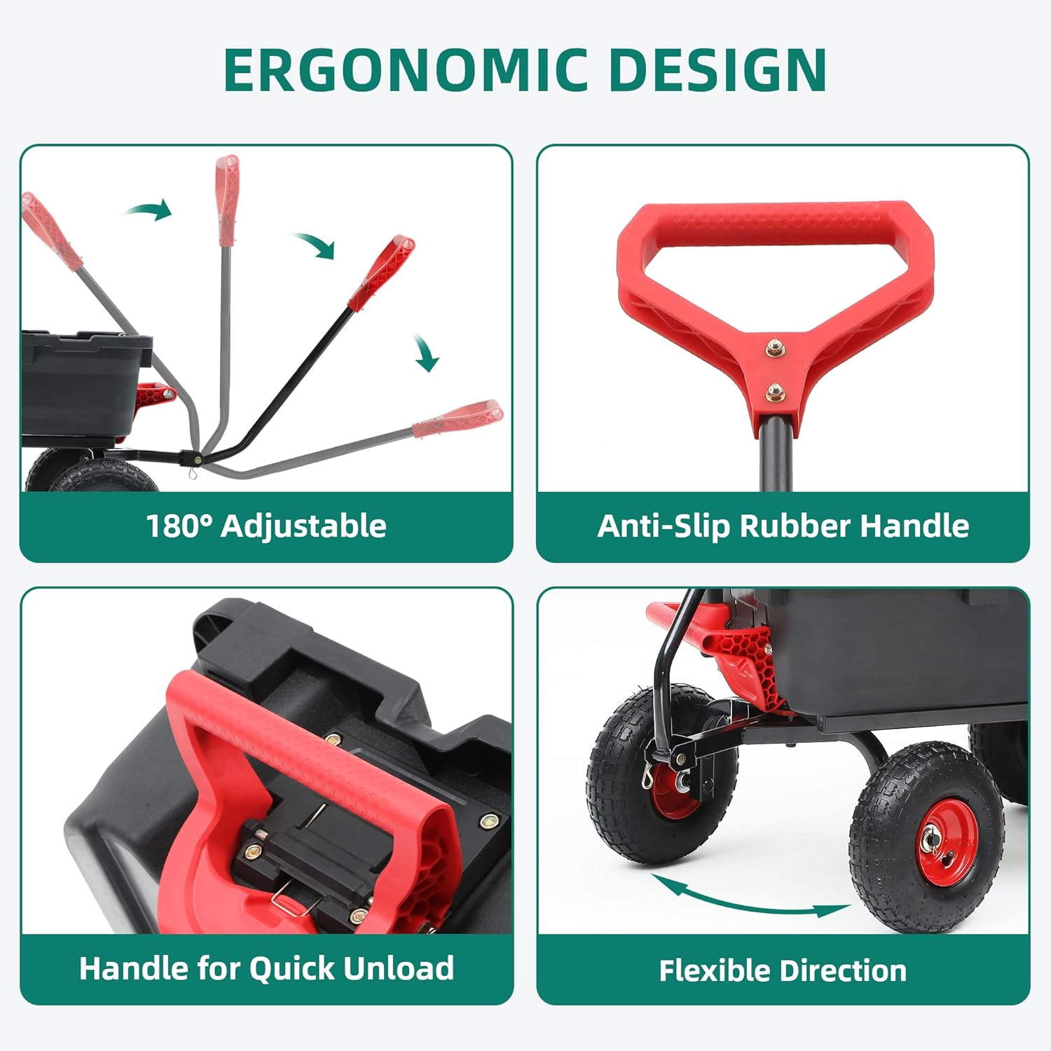 800lbs Garden Dump Cart, Heavy Duty Yard Dump Wagon with 10" Pneumatic Tires, Utility Wheelbarrow cart for Yard, Farm and Garden
