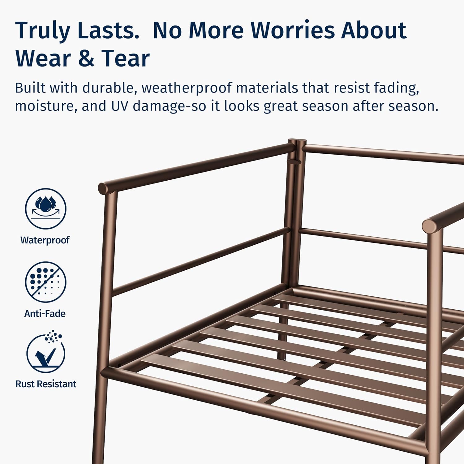 - SUPERIOR COMFORT WITH ROCK-SOLID STABILITY: Relax with confidence—each armchair’s reinforced steel frame provides exceptional support, holding up to 350 lbs per chair without wobbling. Designed for lasting durability, its rust-resistant, weatherproof construction keeps it sturdy and reliable year-round