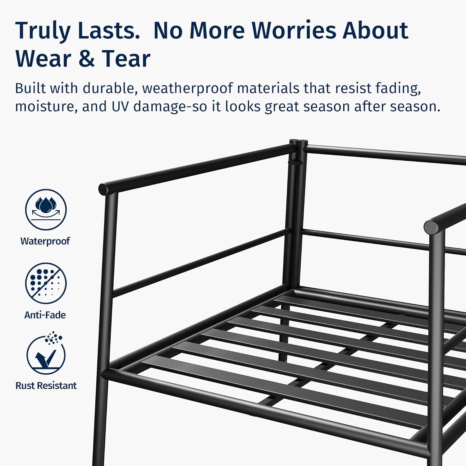 - SUPERIOR COMFORT WITH ROCK-SOLID STABILITY: Relax with confidence—each armchair’s reinforced steel frame provides exceptional support, holding up to 350 lbs per chair without wobbling. Designed for lasting durability, its rust-resistant, weatherproof construction keeps it sturdy and reliable year-round
