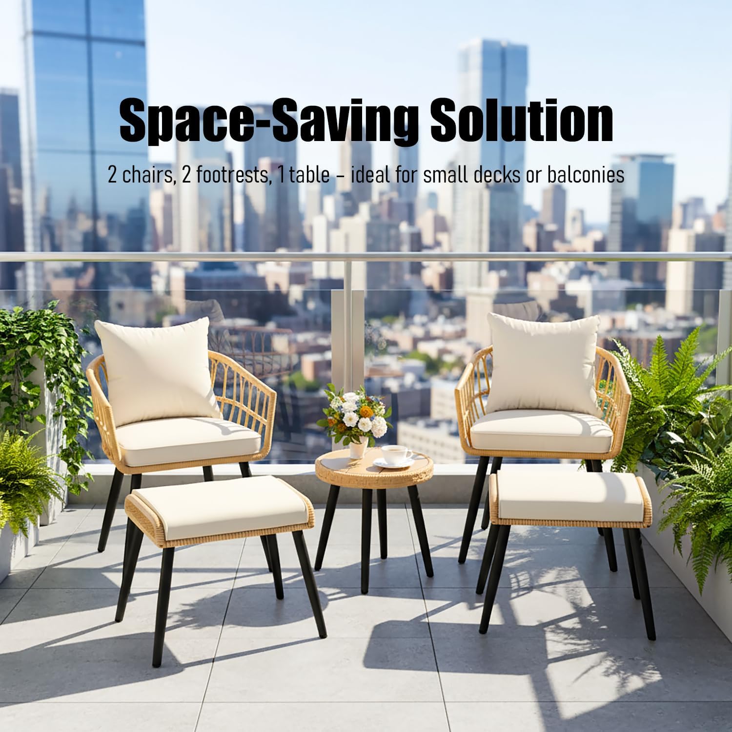 5 Piece Outdoor Bistro Set, Waterproof Patio Furniture Conversation Set, Patio Table and Chairs with Foot Rest, Small Outdoor Wicker Chairs for Porch, Backyard, Deck, Balcony