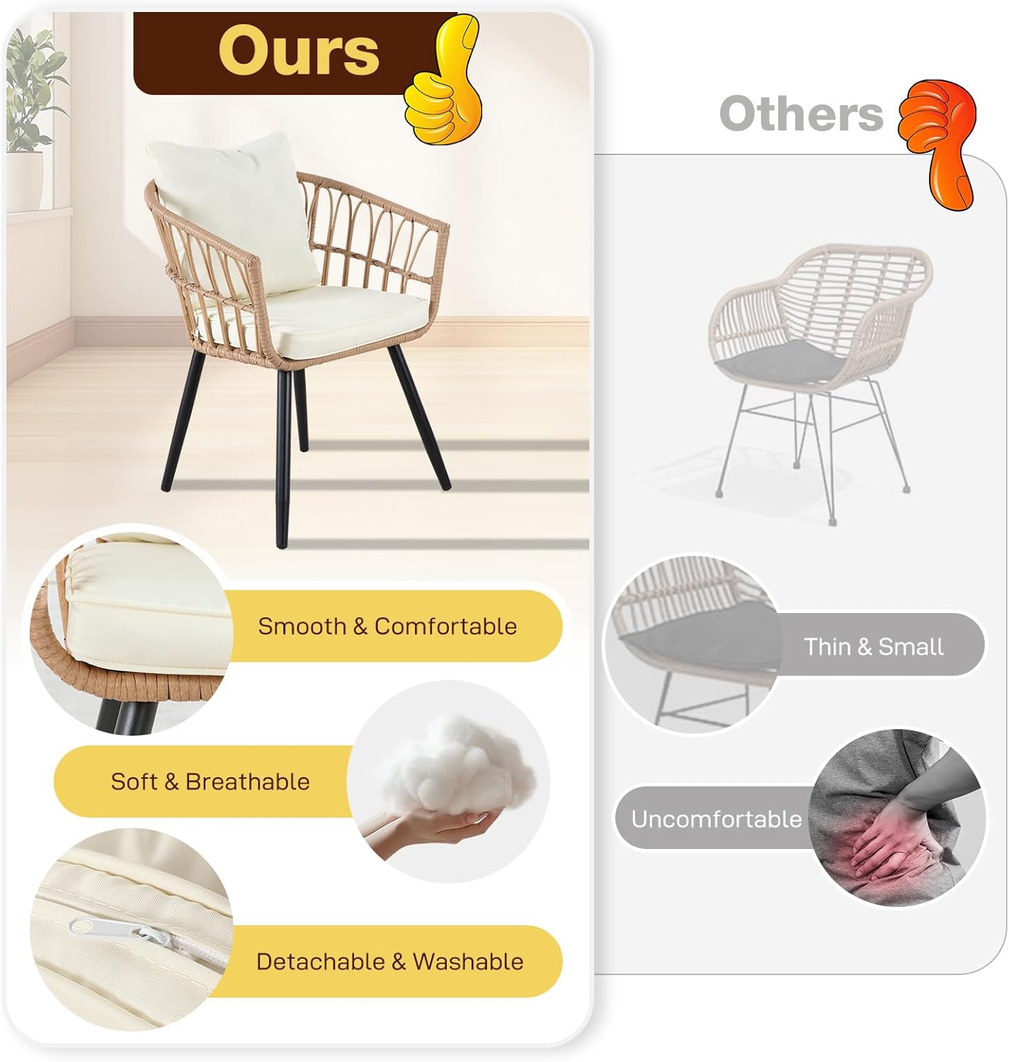- Heavy-Duty Construction & Timeless Style: Engineered with a durable, anti-rust coated frame, our small patio set delivers lasting style and reliability indoors or out. Premium high-density polyethylene (PE) rattan weave offers superior strength and resistance to breakage compared to standard wicker. Each chair boasts a robust 350 lb weight capacity, ensuring enduring performance