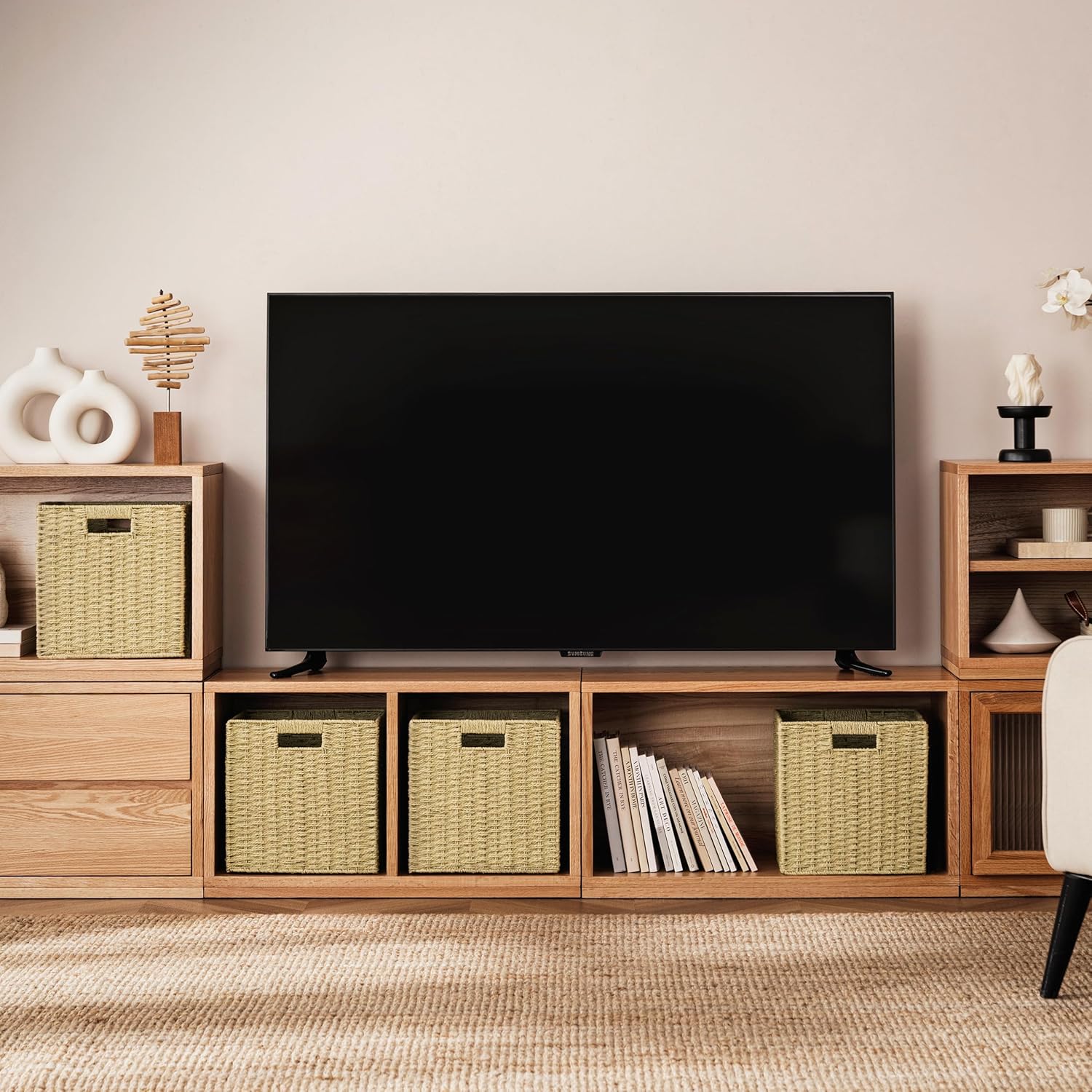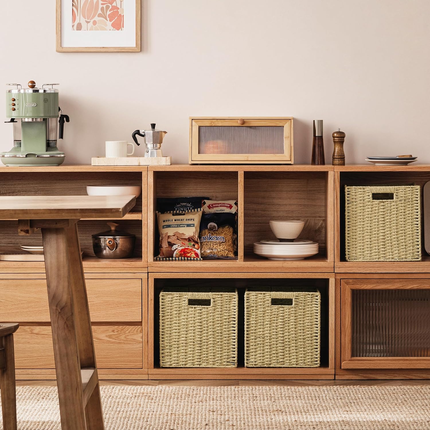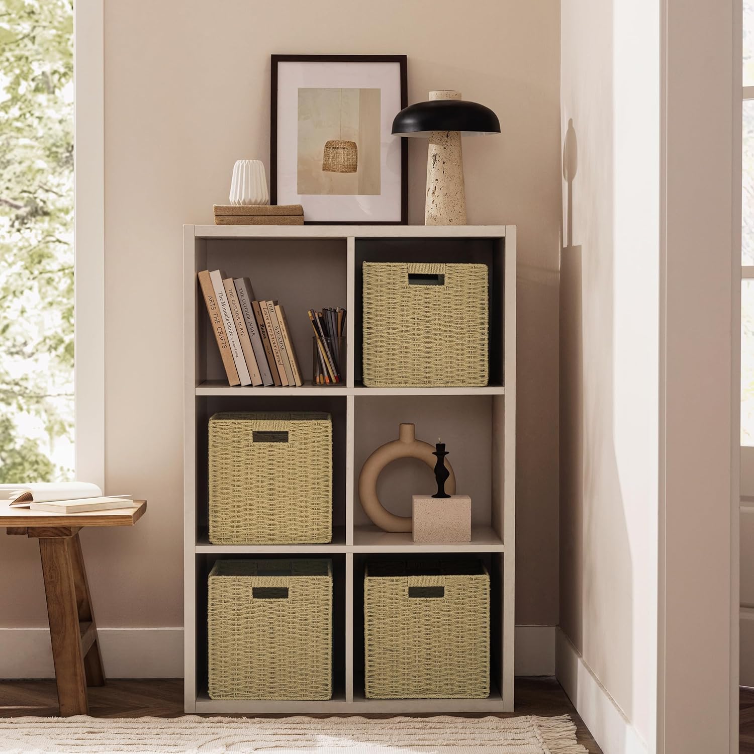UBBCARE 4 Pack Wicker Basket, 11L×11H×10.5W inch Woven Paper Rope Storage Baskets for shelves, Foldable Cube Storage bin with Handle, Storage Basket for Organizing & Decor, Natural