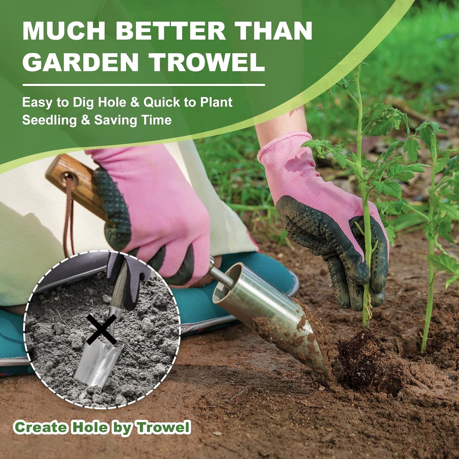 • 【Much Better Than Garden Trowel】A hand trowel makes the hole too wide and sometimes not deep enough, but this small bulb planter is perfect, just twist and turn once in the ground, and you will get an ideal depth hole to plant a bulb. Save a lot of digging time than regular garden shovels and make planting bulbs so much easier.