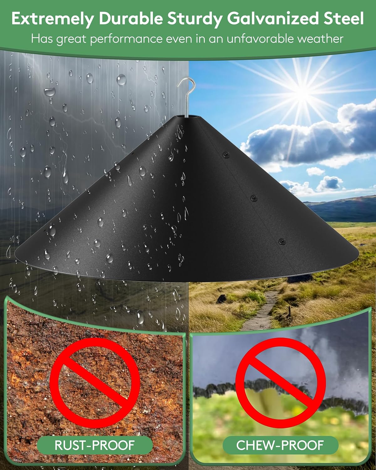 - Expanded 19'' Diameter: A massive 19-inch diameter creates an unstable, slippery surface that thwarts even the most determined squirrels and raccoons. This oversized squirrel deterrent for bird feeders ensures bird feeders remain exclusively for avian guests.
