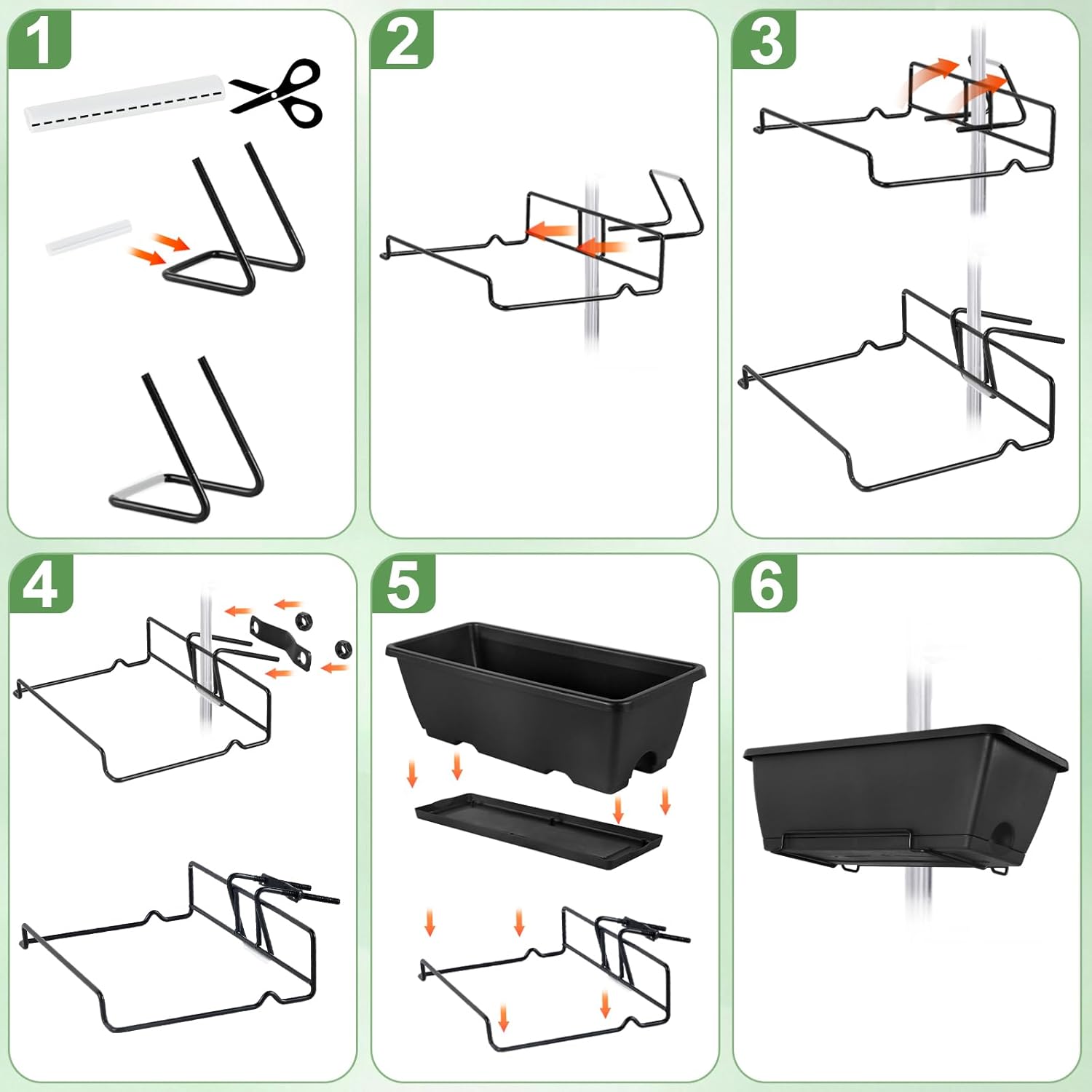 - Easy Installation : The hanging planters for outdoor assembly is simple, and it comes with a detailed installation manual and installation tool kit. Floating railing planter holder offers unparalleled possibility and versatility, transforming any railing into a picturesque garden oasis. Note: Only be installed on vertical railings(wood/vinyl/ spindles),which width ranging from 1-2 inches.