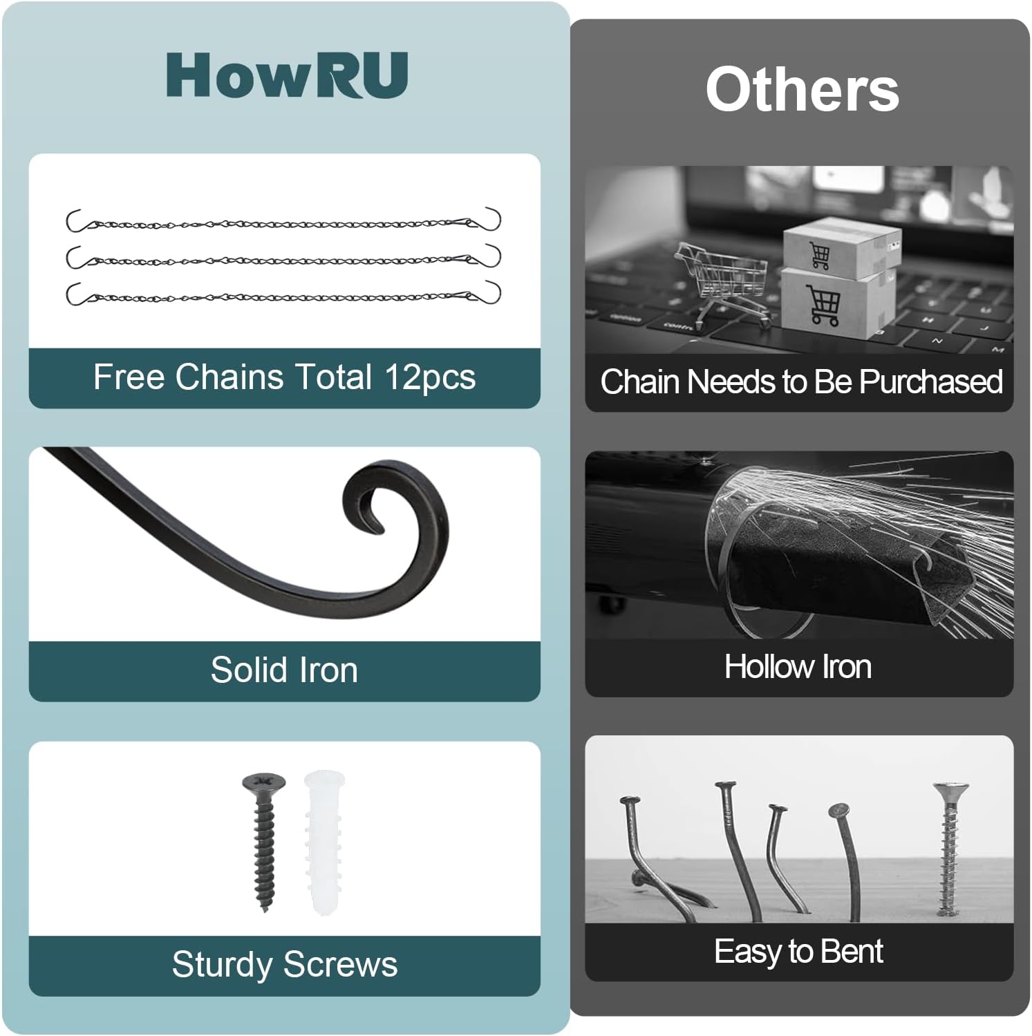 - 【Customer-Centric Convenience】 Free iron chains provide you with more diverse ways to use our product. HowRU promises that our hanger bracket and chains are premium. If you have any questions about our products in the purchase process, please feel free to contact us. We will give you a satisfactory reply as soon as possible.