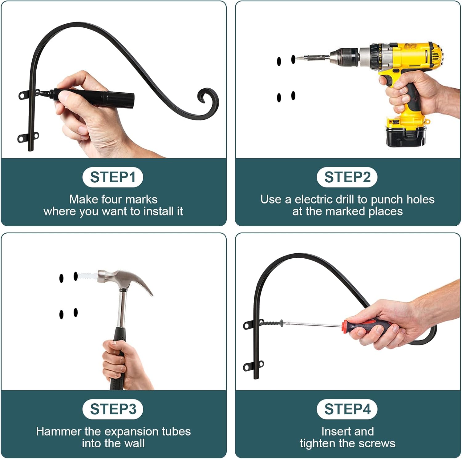 - 【Stable Plant Hanger Hook】 Four screws provide high load-bearing capacity and higher stability. Iron screws can not only withstand more weight without deformation, but also ensure that the plant wall hanger is more stable and not easily tilted. Plant hanging hook can better cope with windy weather, so it is suitable for outdoor use and is a good helper for decorating your courtyard.