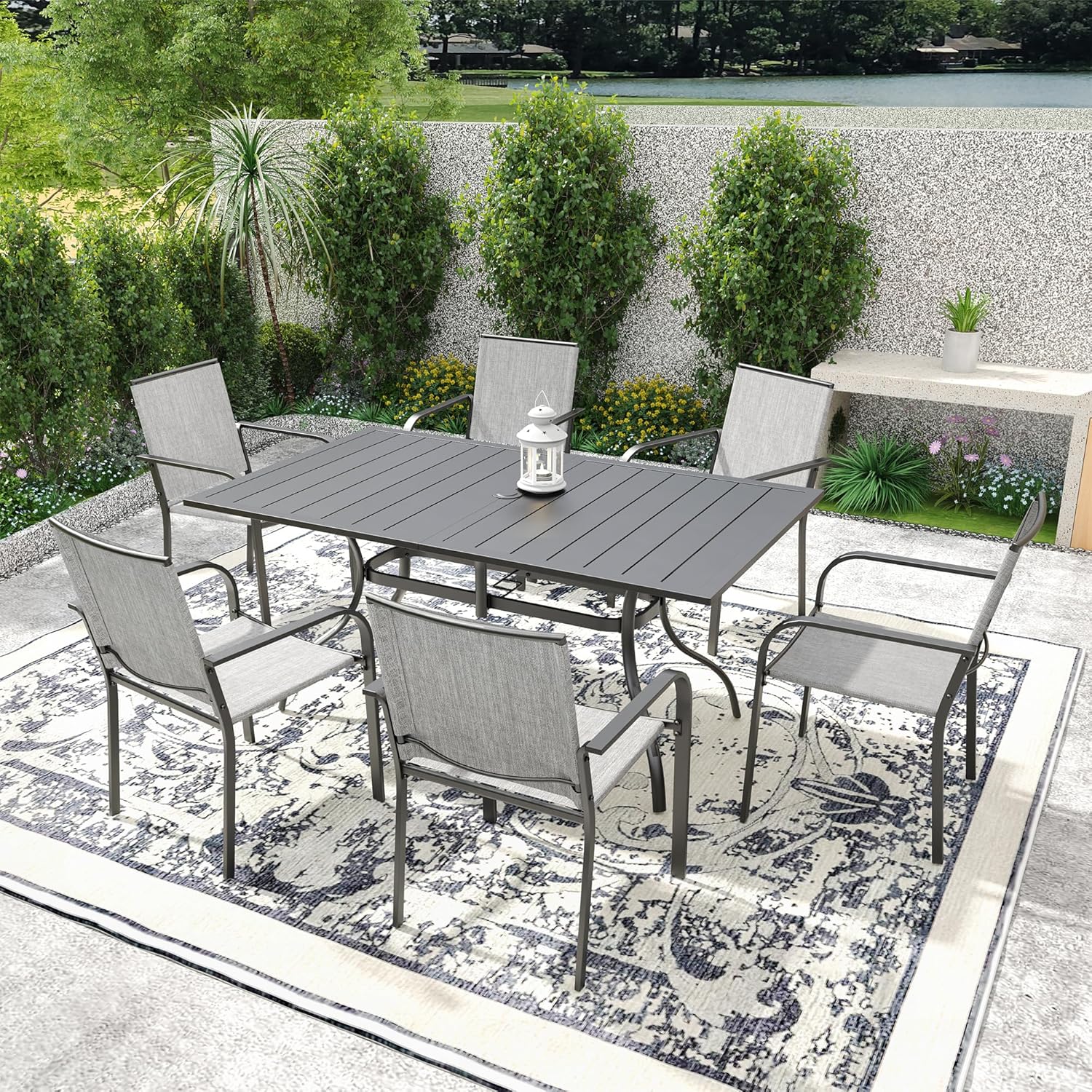 7-Piece Outdoor Patio Dining Set, 6 Stackable Patio Chairs & Rectangular Dining Table with All Weather Frame Furniture Set - Gray