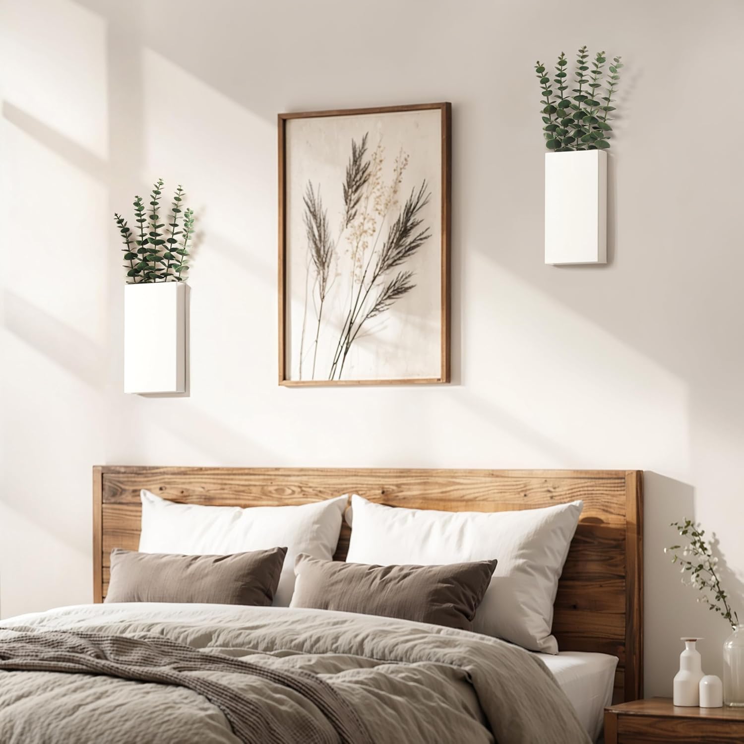 - The set includes 2 wall-mounted planters and 10 artificial eucalyptus stems, perfect for adding greenery to any room. Each planter measures 8.5 x 5.1 x 1.4 inches, making it ideal for farmhouse-style vertical decor.
