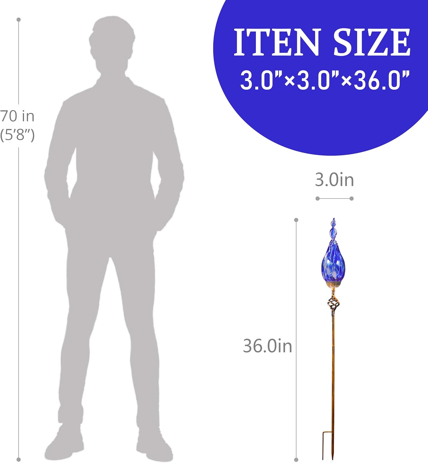 - These solar garden lights feature hand-blown flame-shaped glass tops with sleek metal poles.It looks like a flame statue. These glass flame garden stakes they exude artistry through flowing light and shadow, Decorative lawn stakes serving as exquisite decor by day and infusing for your garden, lawn, or yard with warmth when lit at night.