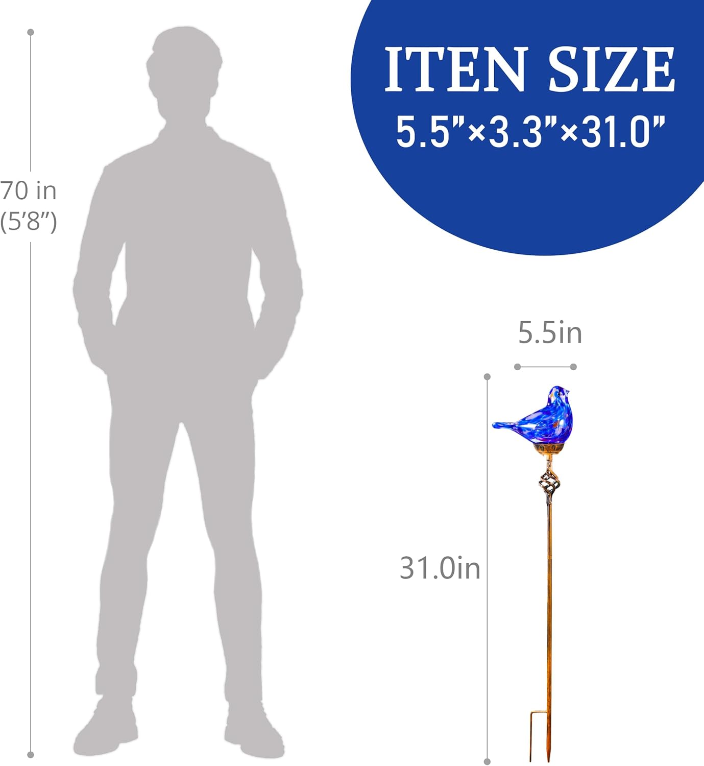 Decorative Solar Lights, Outdoor Solar Bird Stake Lights, Hand Blown Glass Decorative Garden Pathway Lights Outdoor Waterproof Glass Stakes (Dark Blue)