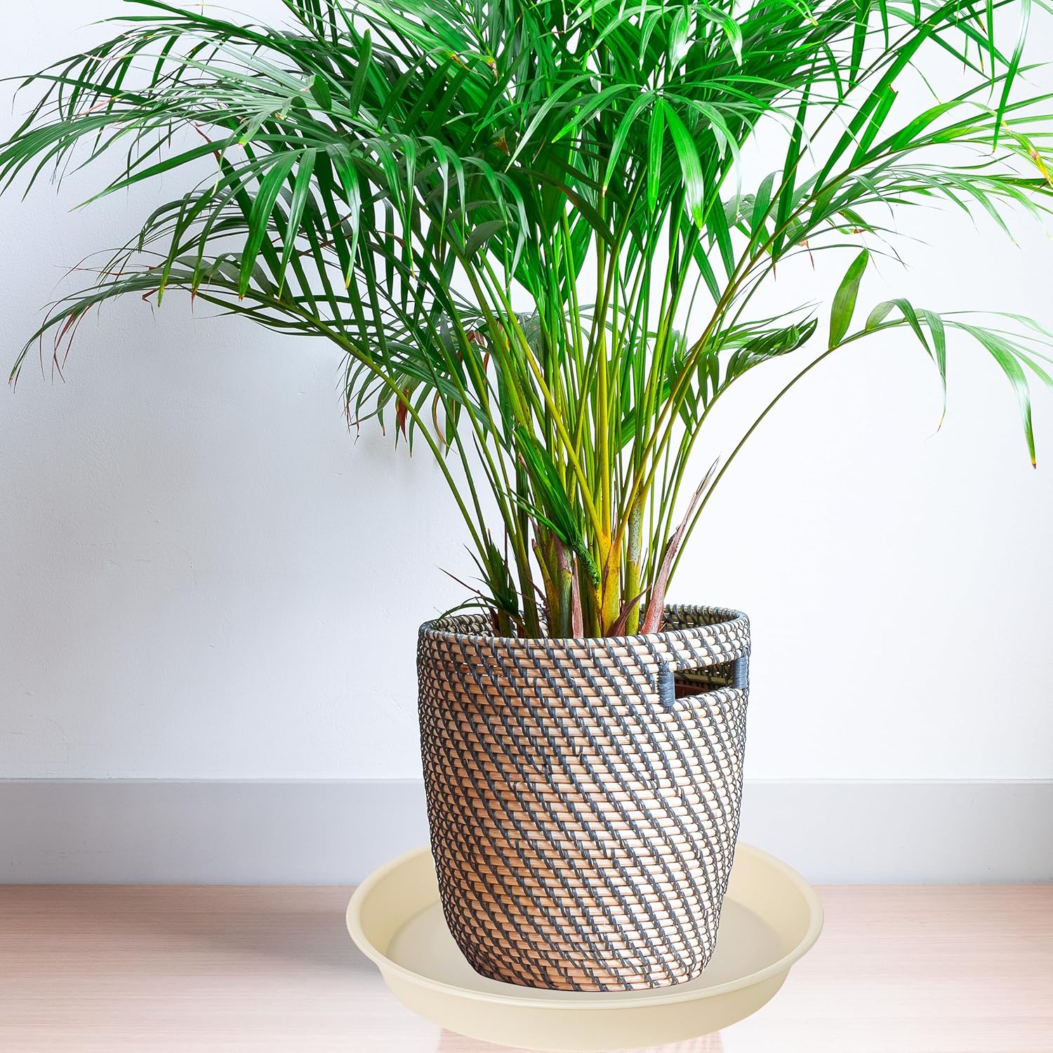 - THICKENED & DURABLE - The small plant saucer are made from duty PP plastic.The plastic is sturdy, strong, durable will last for several years, Plastic plant saucer 14 inch are designed with matte finishing exterior in soft, round shapes, bringing out a modern minimalistic styled, plant saucers for indoors.