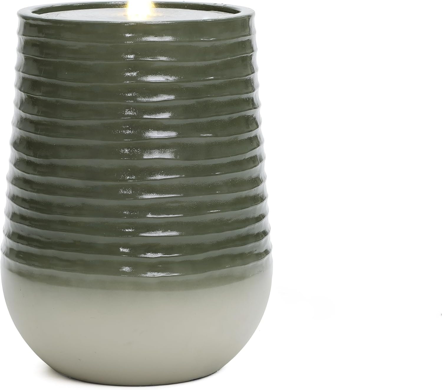 - Premium Material: Made from high-quality, weather-resistant resin, this lightweight yet durable garden water fountain outdoor replicates the elegant look of glazed ceramic pottery, offering a modern, high-end aesthetic without the fragility of real ceramic.