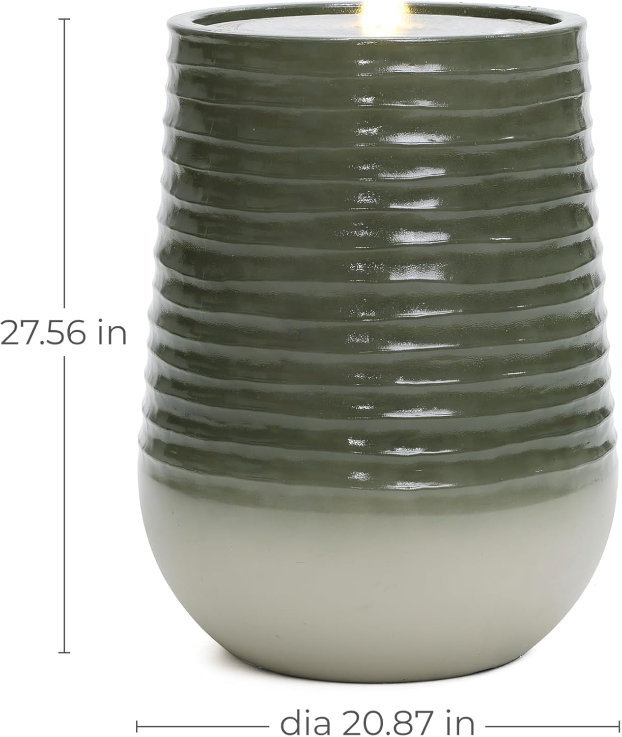LuxenHome 28" Water Fountain Outdoor with LED Light, Modern Bubbling Garden Water Fountains with Gradient Color, Resin Outdoor Waterfall Fountains with Ceramic Like Glaze for Yard, Patio, and Porch