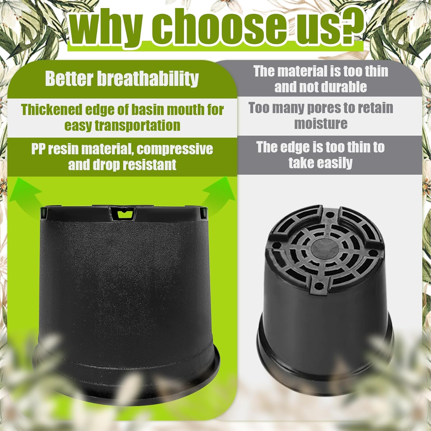 - Sturdy and durable - Plant pots are made of high quality PP plastic, which is tough, not easy to break or crack. Whether it is digging or daily use, it can withstand pressure and ensure a long service life.