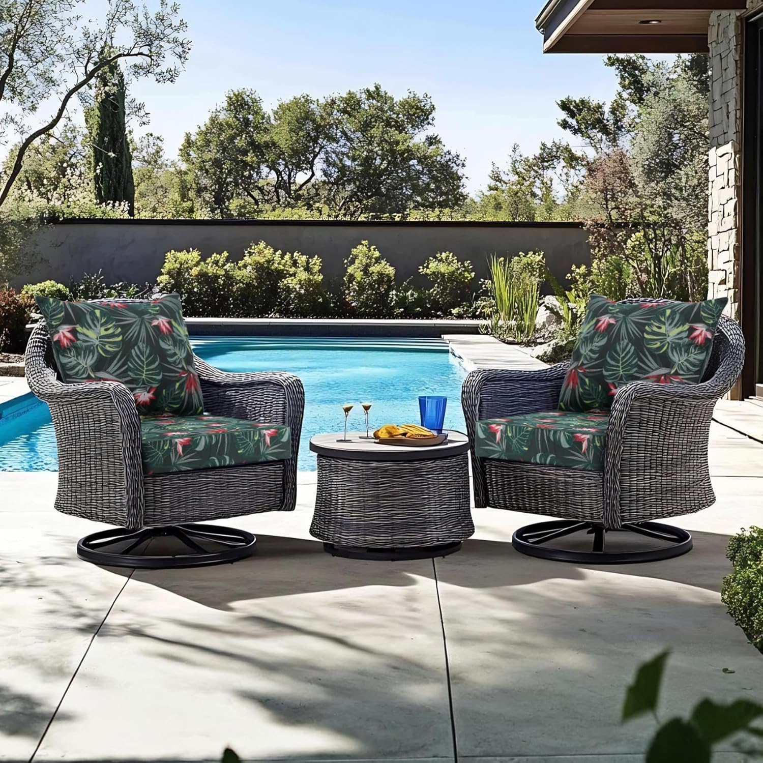 Favoyard Outdoor Seat Cushion 19 x 19 x 3 in Waterproof Pattern Fade Resistant Cover Removable Patio Furniture Cushions Deep Seat & Back Cushion Set with Adjustable Straps for Patio Chair Sofa Couch