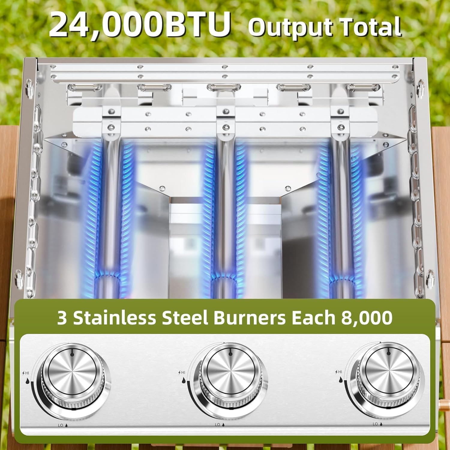 - Precise Heat Control: Outdoor propane grill is designed with 3 independent 8000 BTU stainless steel burners deliver precise heat control.Twist-start ignition and independent control knobs allow you to create custom heat zones for various foods