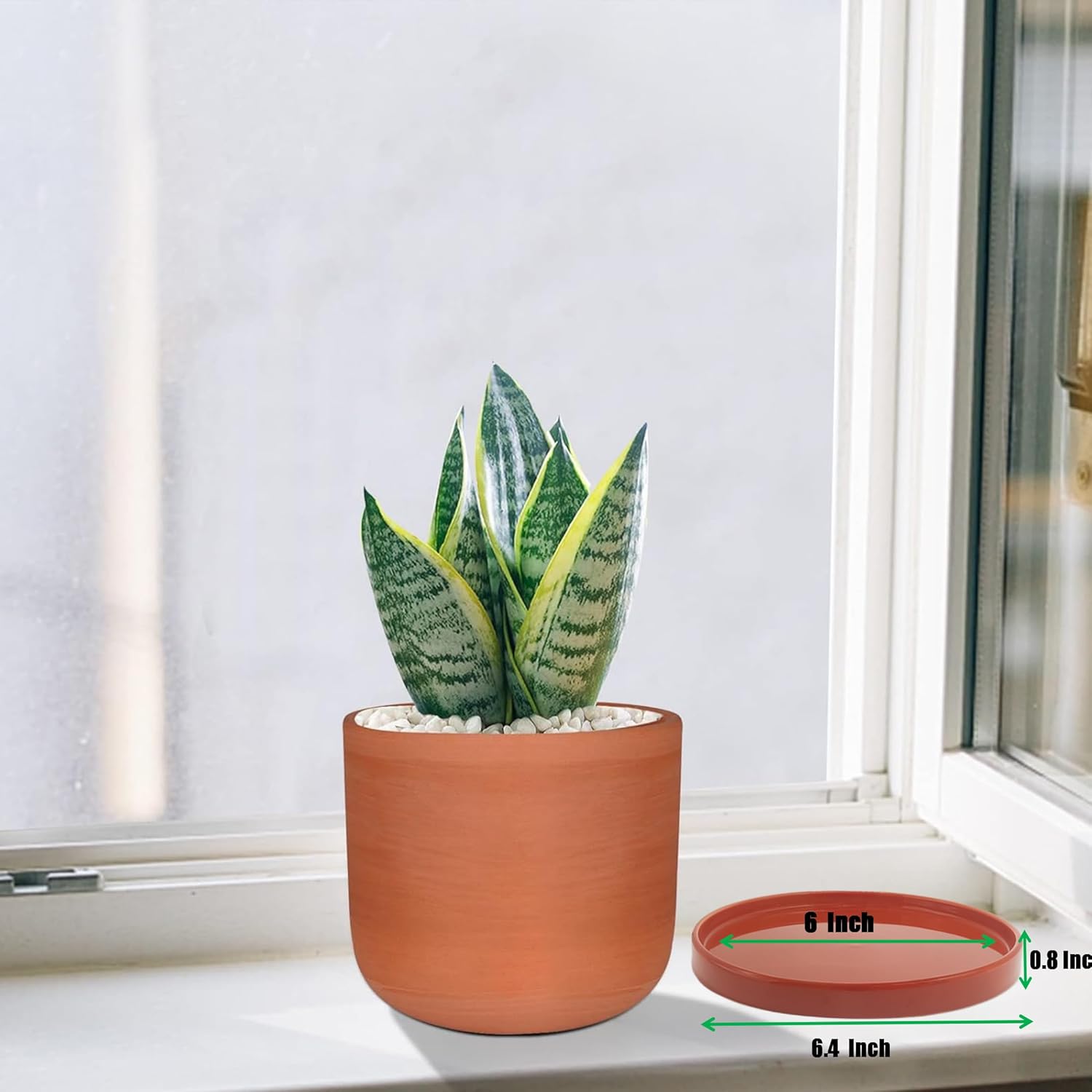 2 Pack Ceramic Plant Saucer Pot Tray 6 Inch Terracotta, Planter Saucers 6 7 8 9 10 11 12 15 Inch, Durable Sturdy Flower Drainage drip Water Tray for Glazed Pots Base (6.4 Inch- Red Terracotta)
