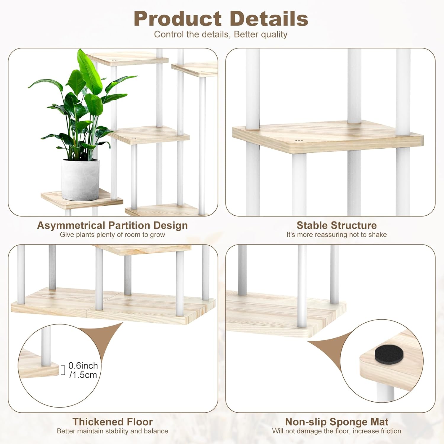 7 Tier Wood Tall Plant Stand Metal Rack Indoor, Multiple Flower Pot Holder Shelves Corner Rack, Planter Shelf Display Rack Storage Organizer for Patio Living Room Balcony Garden(White Oak)