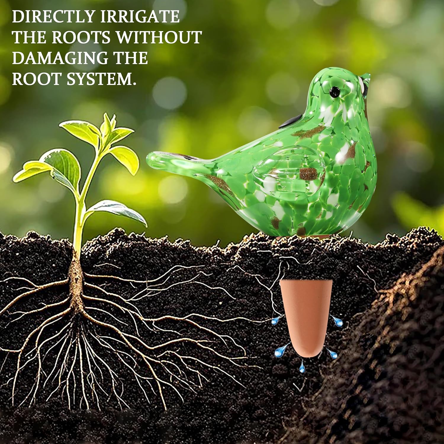 - EASY TO USE: We arranged a small water pour hole on the glass bird, which makes it easy to refill the water level at any time without taking it out of the soil, it can always nourish your plants
