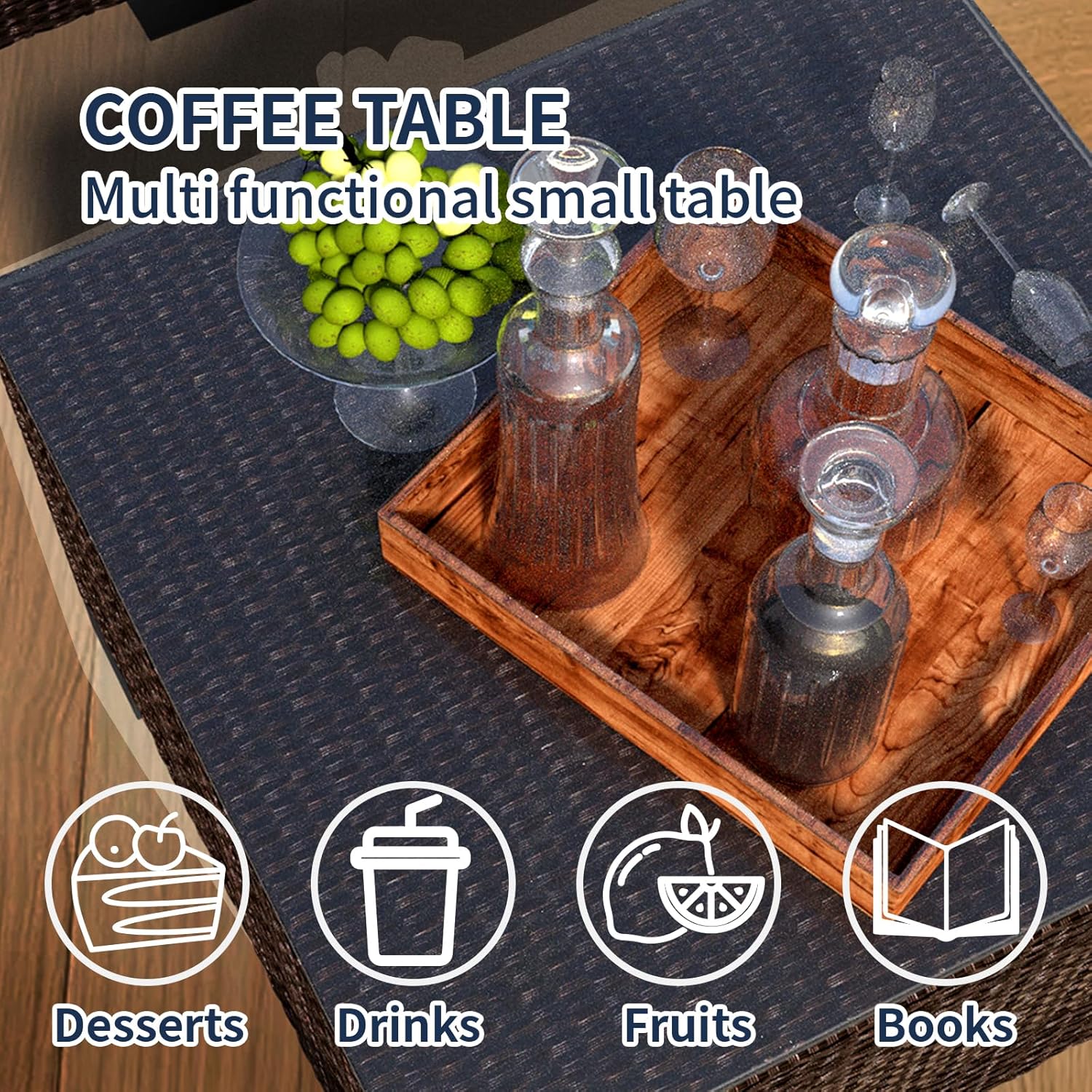- 7-Piece Set: This patio set includes four center sofas, two corner sofas, and a functional coffee table. Whether you're hosting a gathering or enjoying a quiet moment outdoors, this set provides comfortable seating and a convenient surface for drinks, snacks, or decor