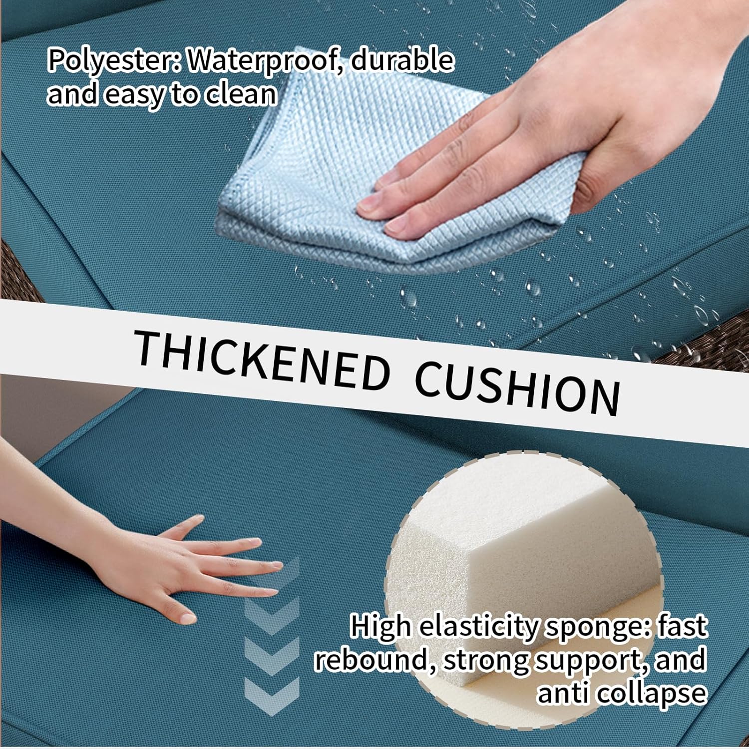 7 Piece Patio Furniture Set, Rattan Outdoor Patio Conversation Sets, Outdoor Sectional Furniture with Waterproof Cushion and Coffee Table, for Deck, Backyard, Garden, Peacock Blue