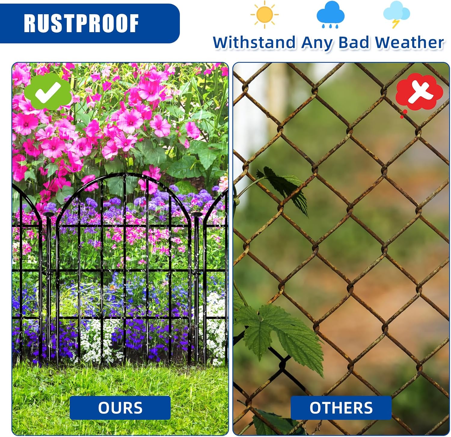 - EASY TO INSTALL - You can easily install garden fences by using metal rod stakes. Compared with the snap method and zip cable method, which are difficult to install and easy to hurt hands, our rod stakes method is safer, simpler, easier to remove and reuse