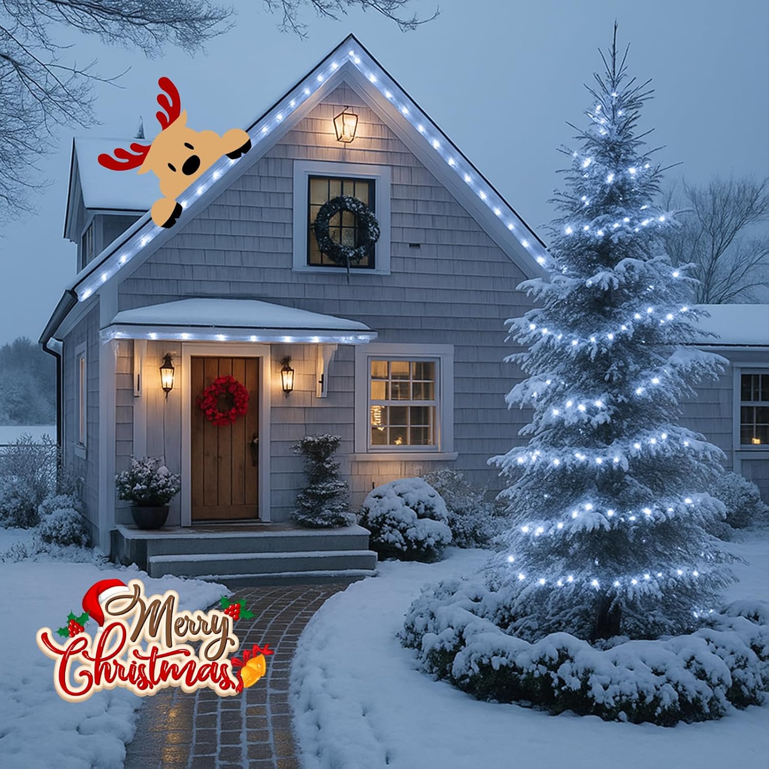 - 2025 New Upgraded Solar Christmas Outdoor Lights with 8 Lighting Modes: Extra-Long (4-Pack Total 180FT and 320 LED), unique 8 lighting modes and memory function and auto On/Off, higher solar powered conversion with larger size solar panel, larger capacity built-in battery, IP65 waterproof performance.