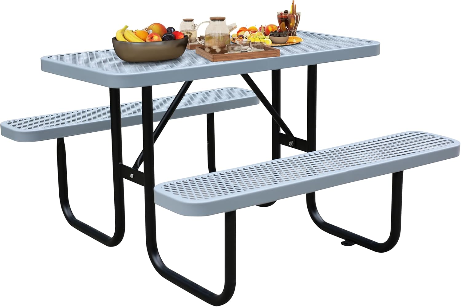 4FT Metal Picnic Tables for Outdoors, Commercial Rectangular Picnic Table and Bench Set for Outside, Patio, Garden, Backyard, Porch, Surface Mount, Grey