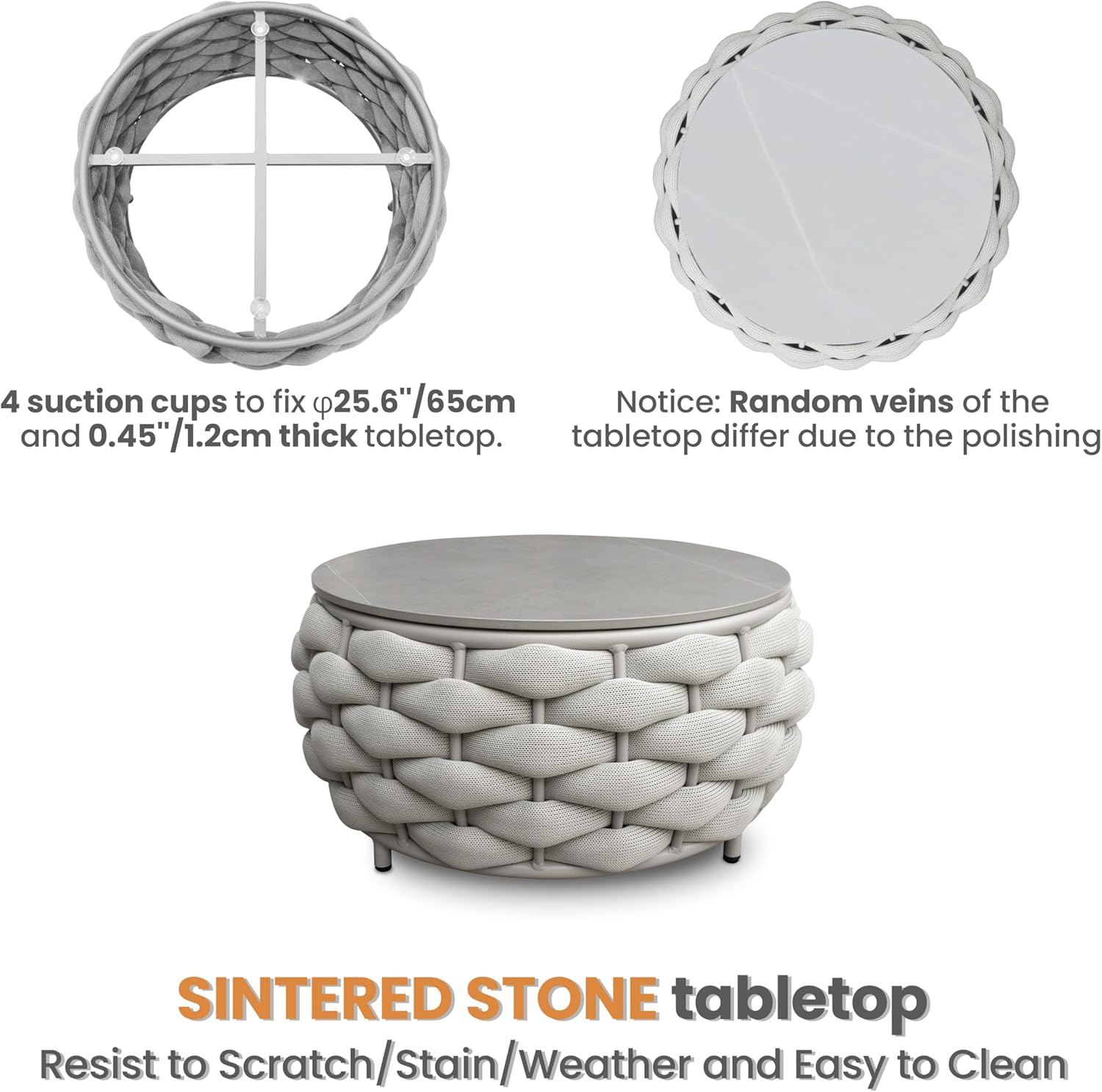 - Easy cleaning and scratch-resistant sintered stone tabletop is fixed by 4 suction cups. Cushions cover replaceable removal and machine washable. Adjustable nylon feet levelers for uneven floor also prevent scratching