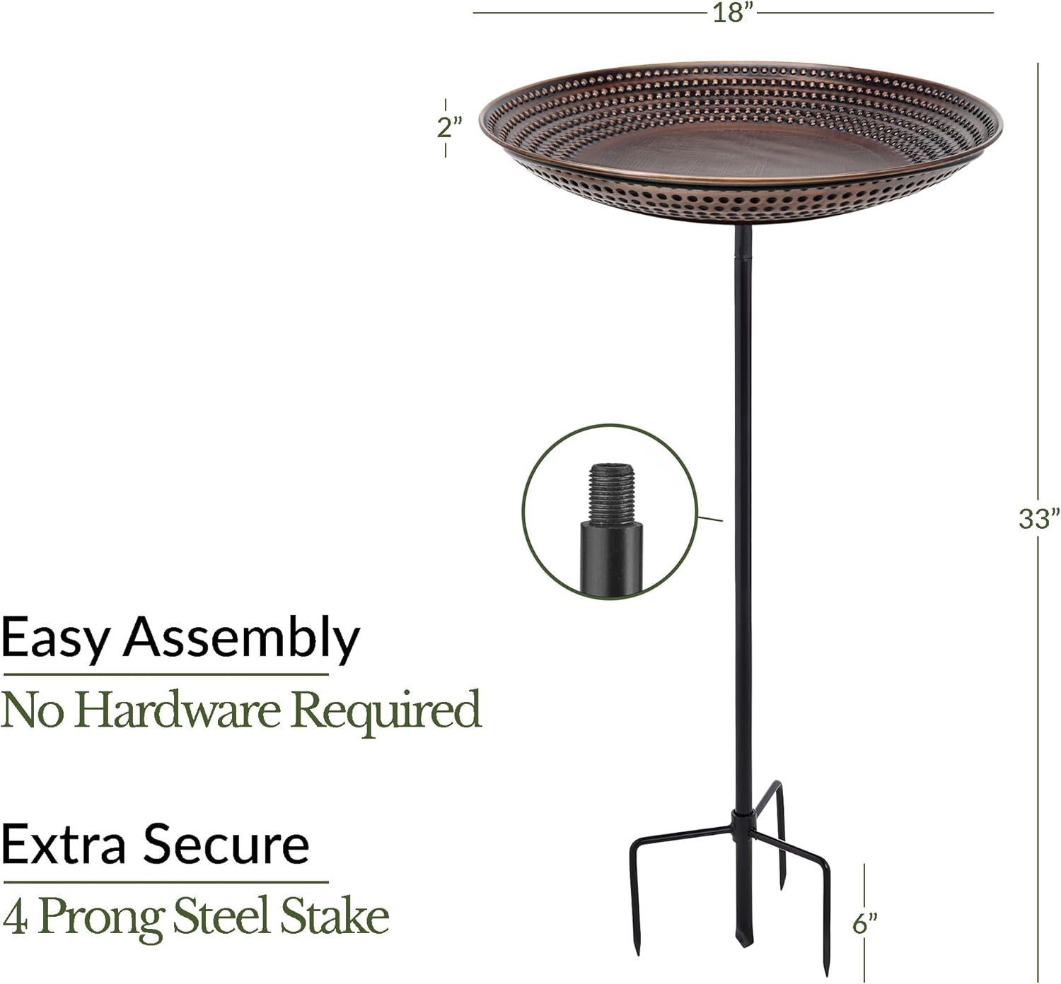 - STURDY 4-PRONG BASE - Designed with a strong, four-pronged stake for enhanced stability, ensuring the bird bath remains secure and upright even in windy conditions.