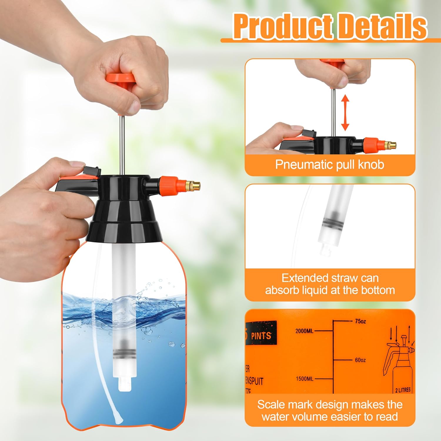 - 【What You Get – 3-Pack Pump Sprayers】 This set includes 3 handheld pump sprayers, each with a 1/2 gallon (2-liter) capacity. A great solution for managing different liquids such as water, natural cleaners, and maintenance solutions around the house or garden.
