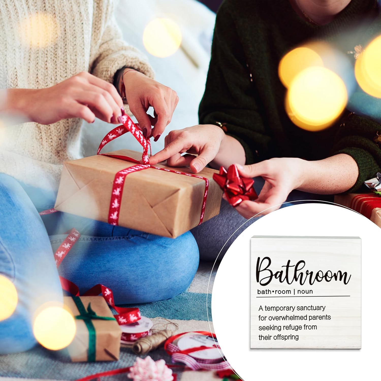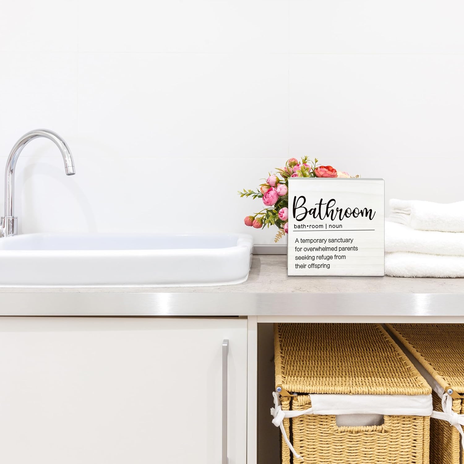 A Temporary Sanctuary For Overwhelmed Parents Wooden Sign - Funny White Block Plaque Desk Decoration-5x5 inches Rustic Wood Block Gifts For Friends Family-Bathroom Tabletop Favors & Supplies-A02