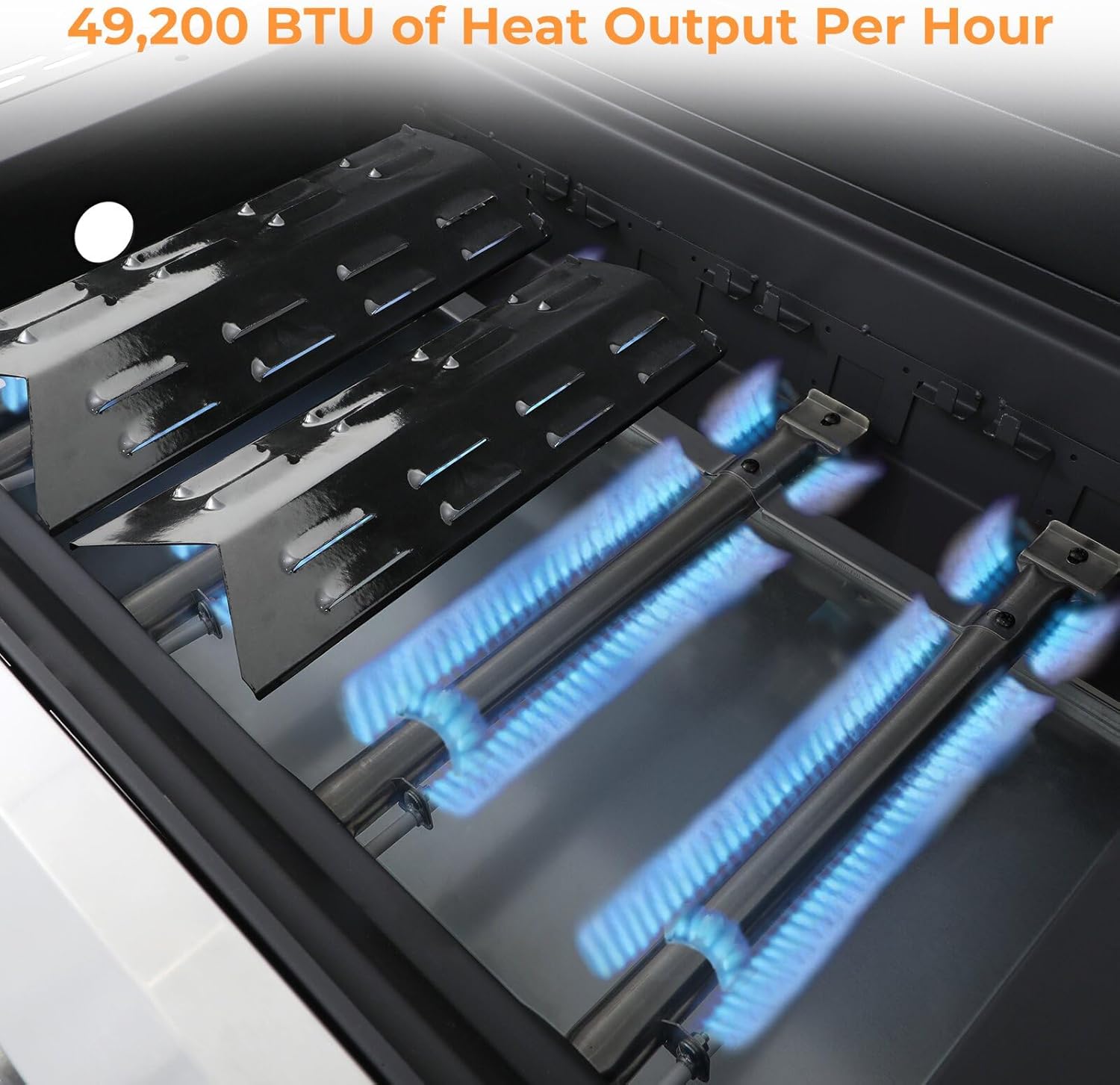 - 【Easy Outdoor Grill】Ignite this propane grill's 4 stainless steel burners, boasting 49,200 BTU/hr. Just push & turn the knob, the grilling begins, the built-in thermometer (100°F-800°F) lets you monitor the cooking temperature, ensuring great results every time