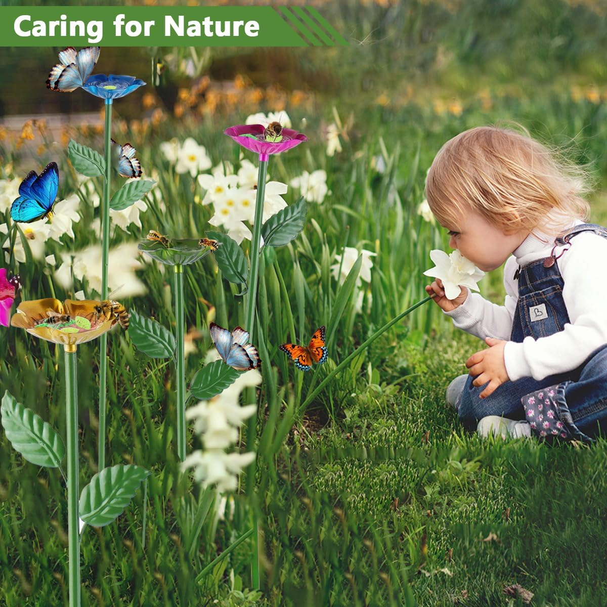 4 Pack Bee Watering Station for Garden, Metal Flower Colorful Butterfly Water Feeders, Butterfly Bath Bowl, Pollinator Watering Stake Decor for Outdoor Yard (Pink,Green,Blue,Orange)