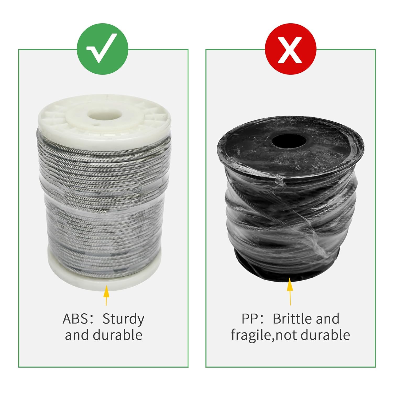 - 【Superior strength and durability】: The wire rope is made of 304 stainless steel, the wire cable structure is 7X7, with nylon coating on the surface to make it smooth, it is also insulated, rust-proof, corrosion-resistant, and withstands any harsh weather conditions such as strong sunlight and heavy rain.