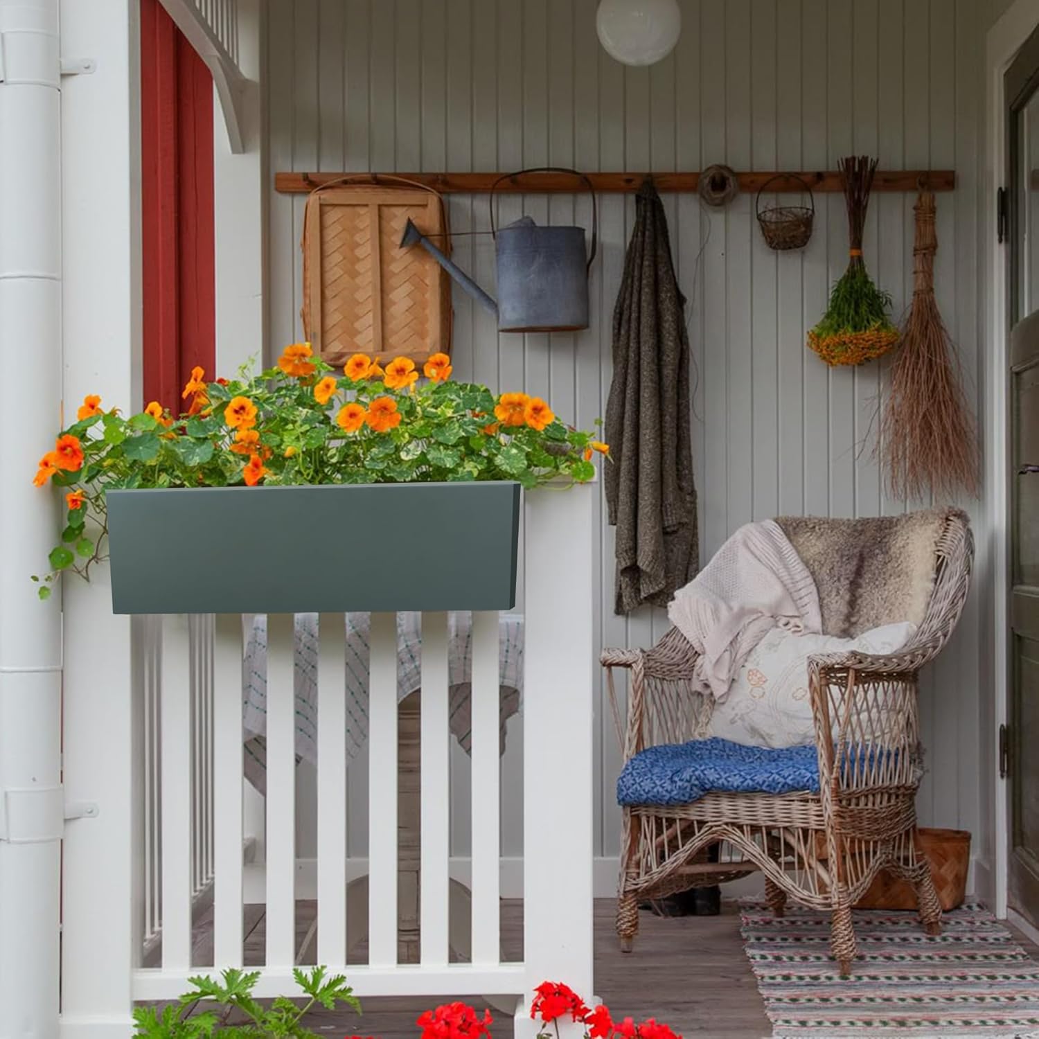 - DURABLE METAL RAILING HANGING PLANTERS: Made of 0.04-inch thick galvanized steel, the flower box is more durable than plastic and iron. The surface is coated with a weather-resistant coating to to cracks, scratches, UV and fading
