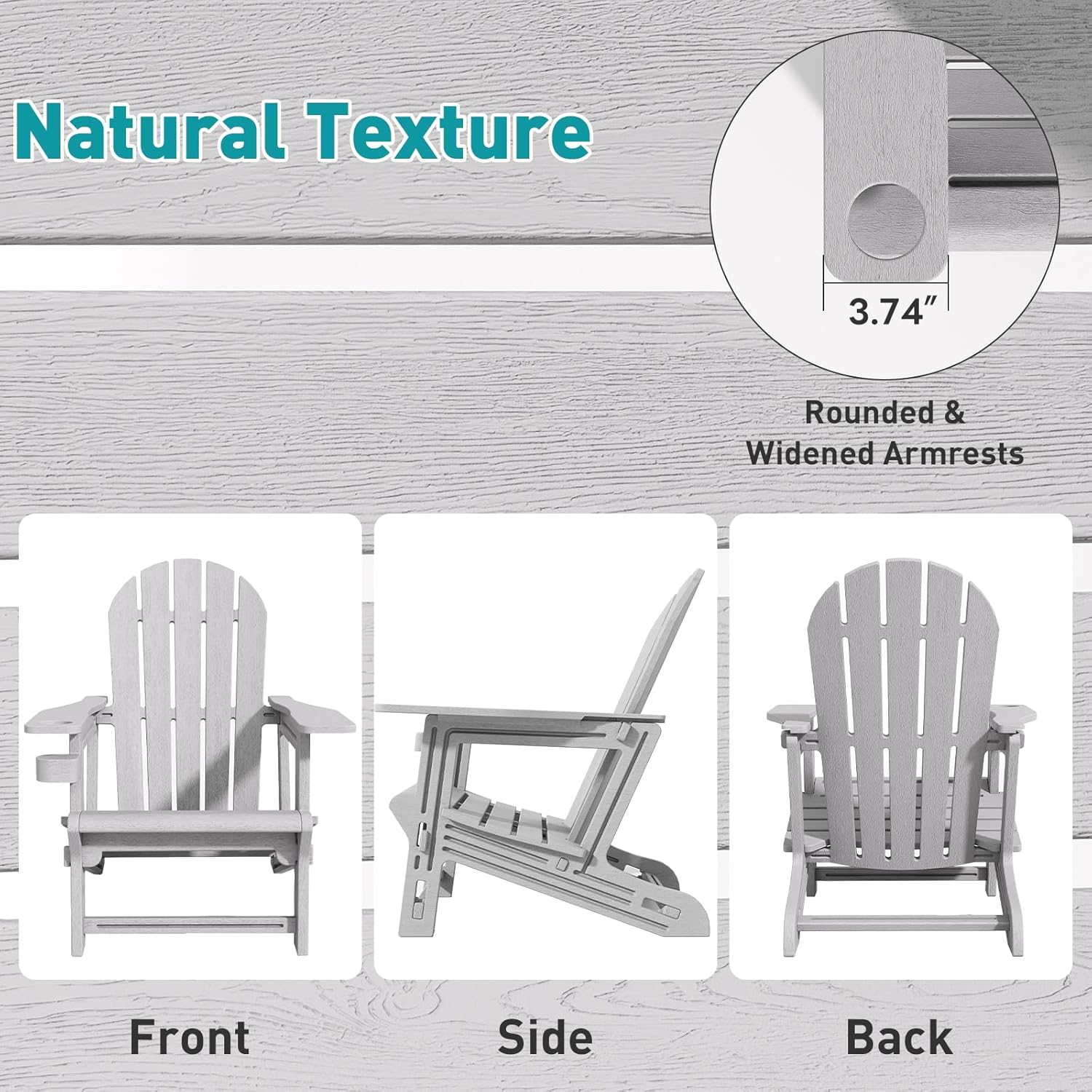 Adirondack Chairs Set of 4, Tool-Free Assembly All-Weather Plastic Adirondack Chairs, HDPE Fire Pit Chairs with Cup Holder, Outdoor Chair for Patio Garden (Grey)