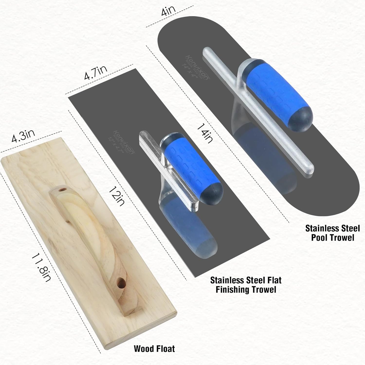 - 【Built for Full-Scale Finishing – From Base to Detail】Level ground with the large 11.8" wood float. Seal and polish with the 12" flat and 14" pool trowels. Create clean edges and joints using the edger and groover. Specialized trowel concrete tool support every phase — from concrete prep and smoothing to final detailing and trimming