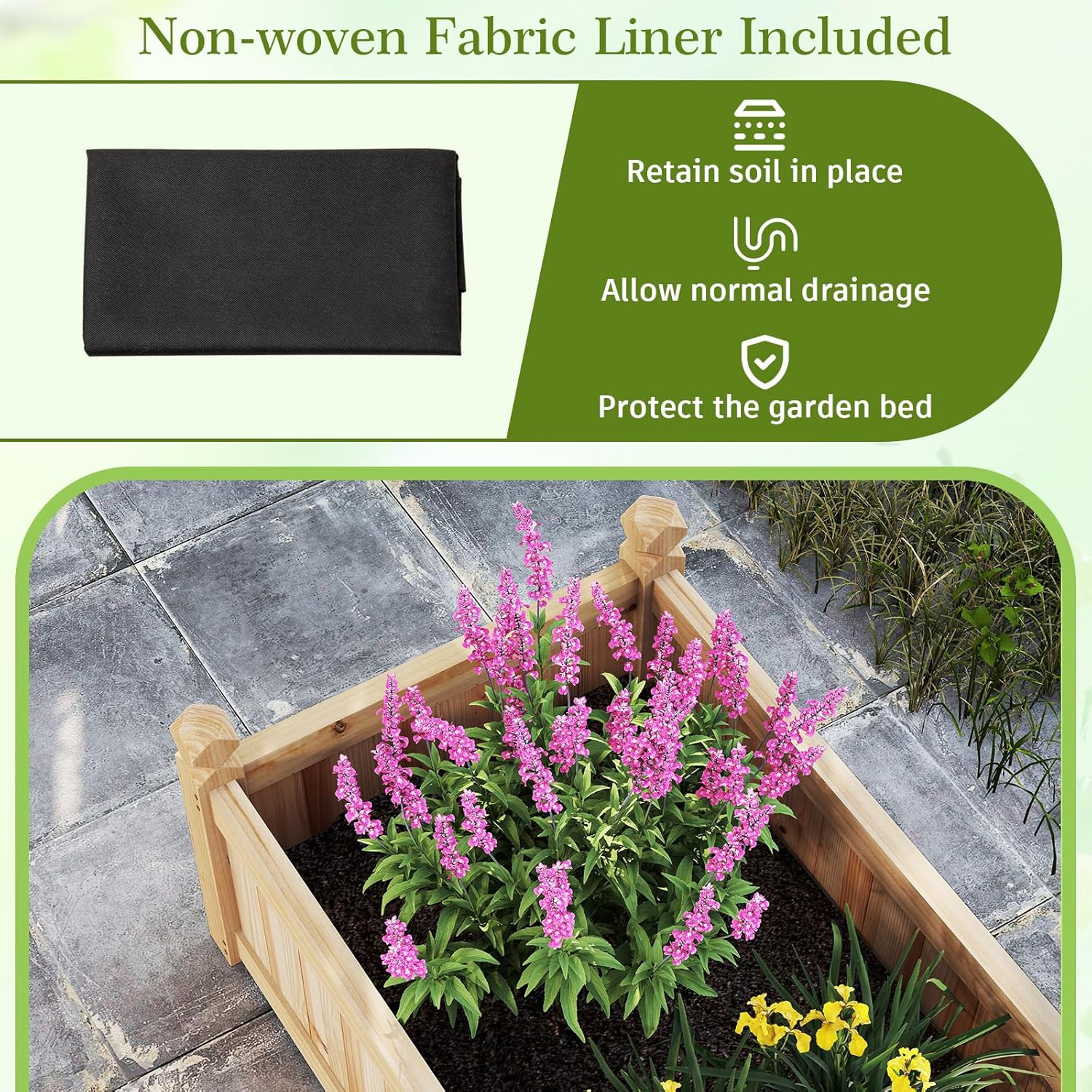 - 【Well-Designed Planting Beds】Our improved plant container features a middle compartment panel for added versatility, allowing for separate planting areas to grow different types of plants. Meanwhile, the non-woven fabric liner included with our garden bed and easy cleaning by keeping soil in place while allowing water to pass through.