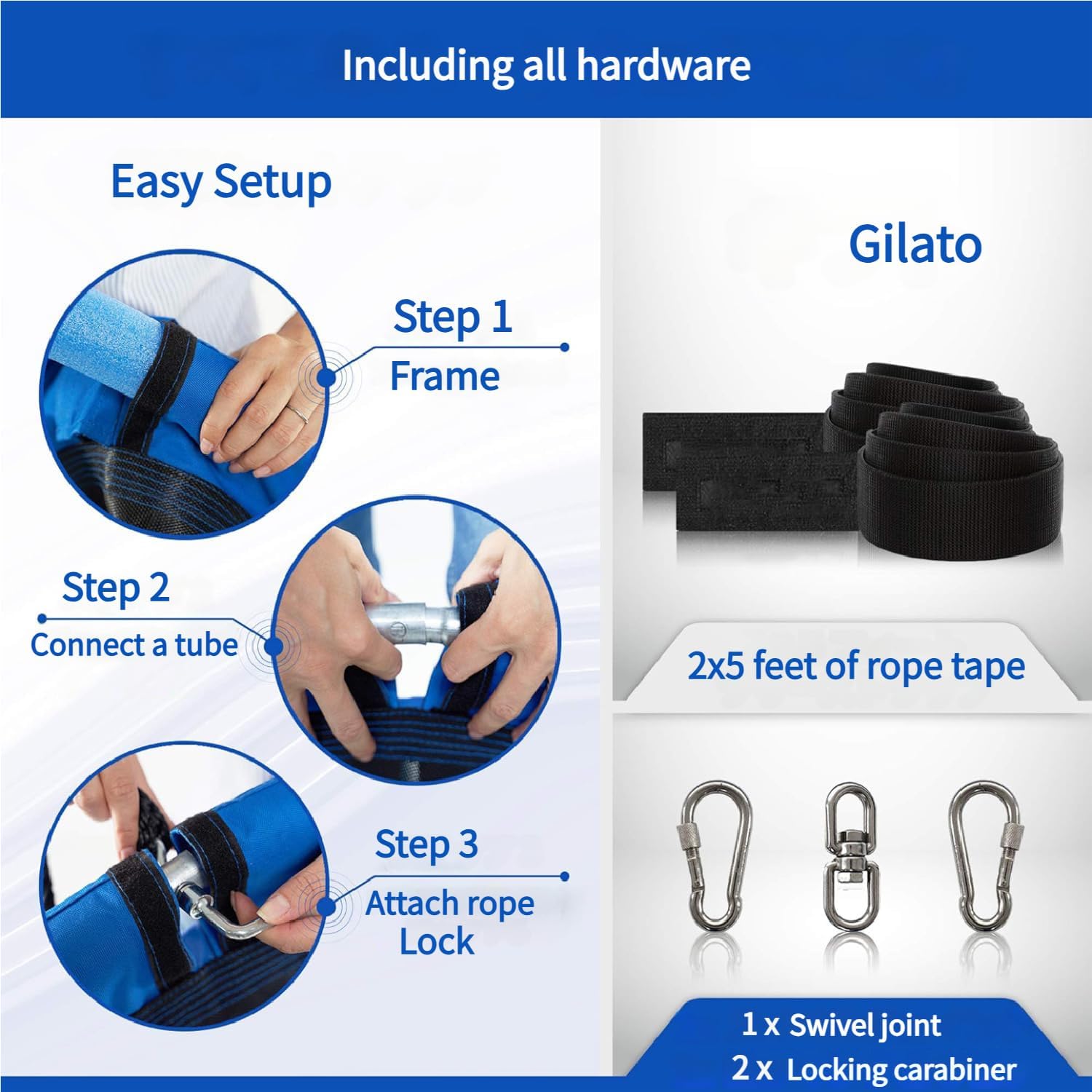 - Sturdy Tree Swing: Our vibrant blue platform tree swing is crafted with a robust steel frame and durable 900D Oxford polyester, supporting up to 700 pounds. This outdoor swing is weather-resistant and ensures enduring enjoyment for your children