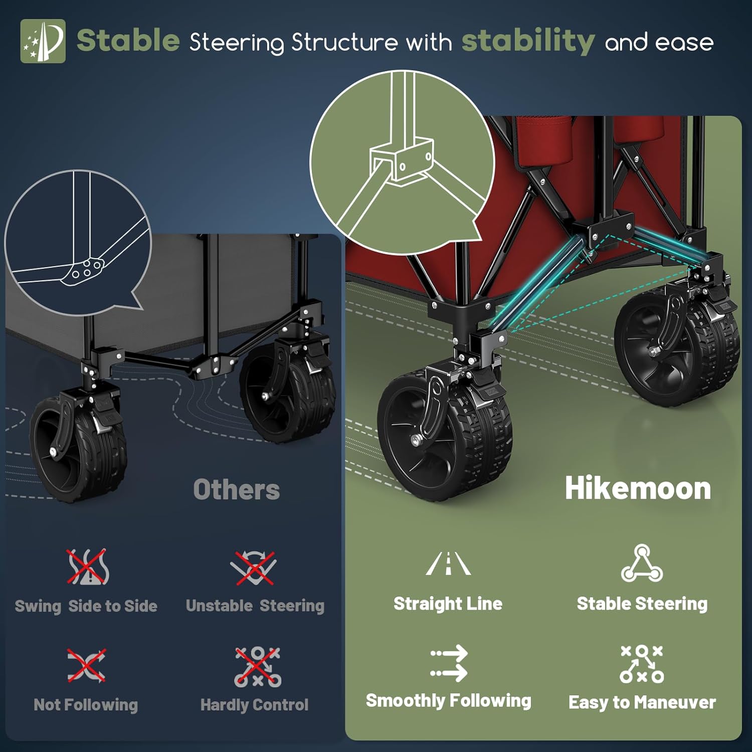 - ใ๐๐ซ๐จ๐๐ฎ๐๐ญ ๐๐ข๐ณ๐, ๐๐ข๐๐ ๐๐จ๐๐ค๐๐ญ ๐๐ง๐ ๐๐ฎ๐ฉ ๐๐จ๐ฅ๐๐๐ซ๐ฌใ: Hikemoon collapsible wagon cart ๐ฎ๐ง๐๐จ๐ฅ๐๐๐ ๐ฌ๐ข๐ณ๐: 46.06"D x 22.64"W x 24.17"H, ๐๐จ๐ฅ๐๐๐ ๐ฌ๐ข๐ณ๐: 12.59"D x 8.98"W x 24.17"H, ๐ฐ๐ก๐๐๐ฅ ๐ฌ๐ข๐ณ๐: 7" x 4", ๐๐ฒ๐ถ๐ด๐ต๐ ๐ผ๐ณ ๐๐ฎ๐ป๐ฑ๐น๐ฒ ๐๐ผ ๐๐ฟ๐ผ๐๐ป๐ฑ: 42.91". Features one Oxford side pocket and two cup holders for convenient storage of drinks and personal items.