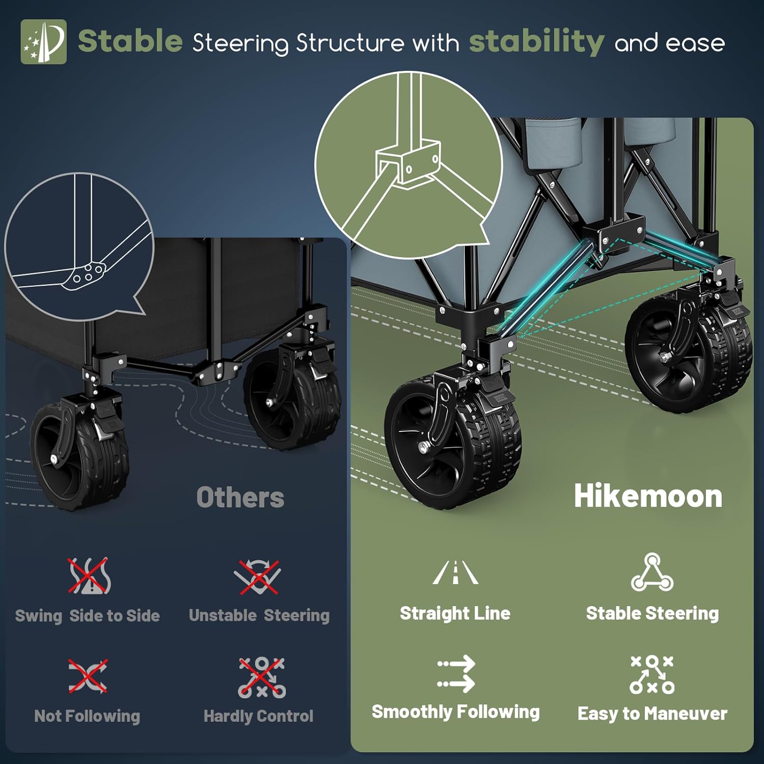 - ใ๐๐ซ๐จ๐๐ฎ๐๐ญ ๐๐ข๐ณ๐, ๐๐ข๐๐ ๐๐จ๐๐ค๐๐ญ ๐๐ง๐ ๐๐ฎ๐ฉ ๐๐จ๐ฅ๐๐๐ซ๐ฌใ: Hikemoon collapsible wagon cart ๐ฎ๐ง๐๐จ๐ฅ๐๐๐ ๐ฌ๐ข๐ณ๐: 46.06"D x 22.64"W x 24.17"H, ๐๐จ๐ฅ๐๐๐ ๐ฌ๐ข๐ณ๐: 12.59"D x 8.98"W x 24.17"H, ๐ฐ๐ก๐๐๐ฅ ๐ฌ๐ข๐ณ๐: 7" x 4", ๐๐ฒ๐ถ๐ด๐ต๐ ๐ผ๐ณ ๐๐ฎ๐ป๐ฑ๐น๐ฒ ๐๐ผ ๐๐ฟ๐ผ๐๐ป๐ฑ: 42.91". Features one Oxford side pocket and two cup holders for convenient storage of drinks and personal items.