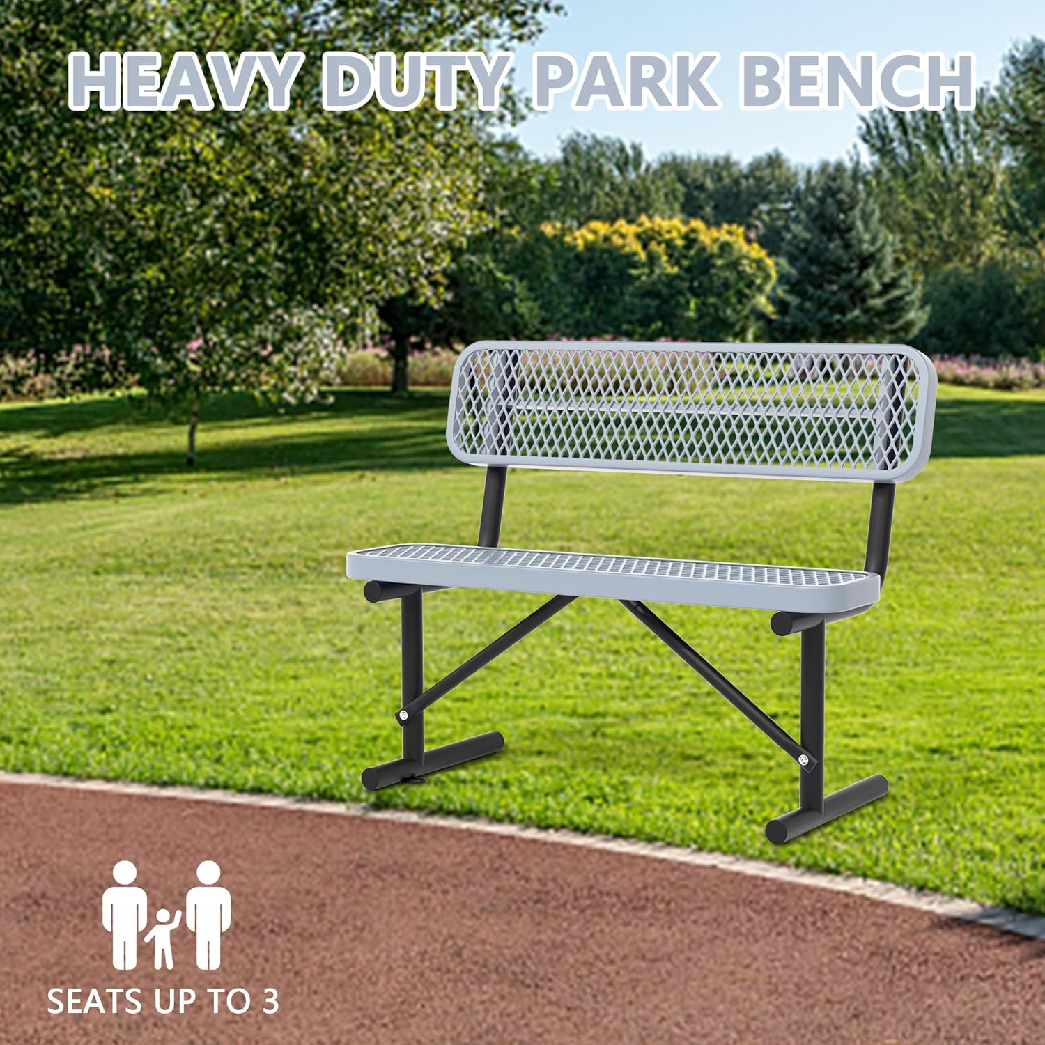 4FT Benches for Outside, Heavy-Duty Outdoor Garden Bench W/Back, Metal Park Bench for Sitting Area, Commercial Bench for Patio Porch Backyard School Sports Church Locker Room Shopping Centers