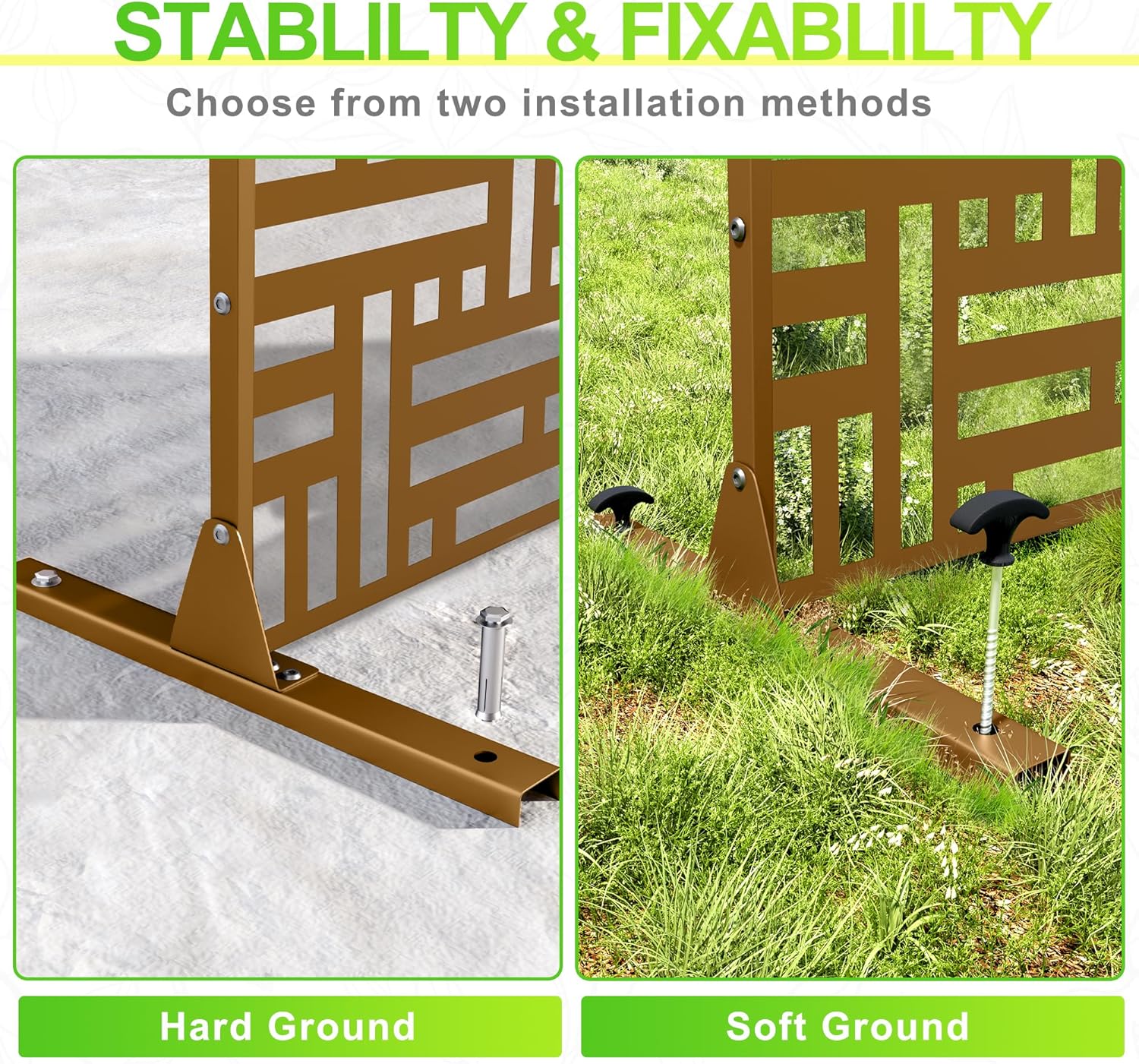 - 【Robust Metal Build】The metal privacy screen boasts a robust construction crafted from high-quality galvanized steel. Designed to endure the rigors of outdoor elements, its sturdy build guarantees prolonged durability.