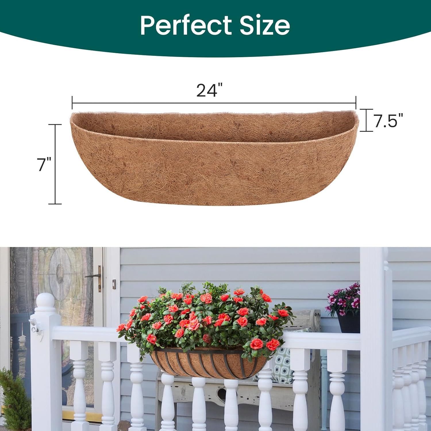 4 Packs 24 inch Hanging Basket Liner Trough Coco Coir Liner for Planter Replaceable Natural Coconut Fiber for Hanging Baskets Window Box Garden Fence Flower Pots Outdoor Indoor (4Pcs 24 inch)
