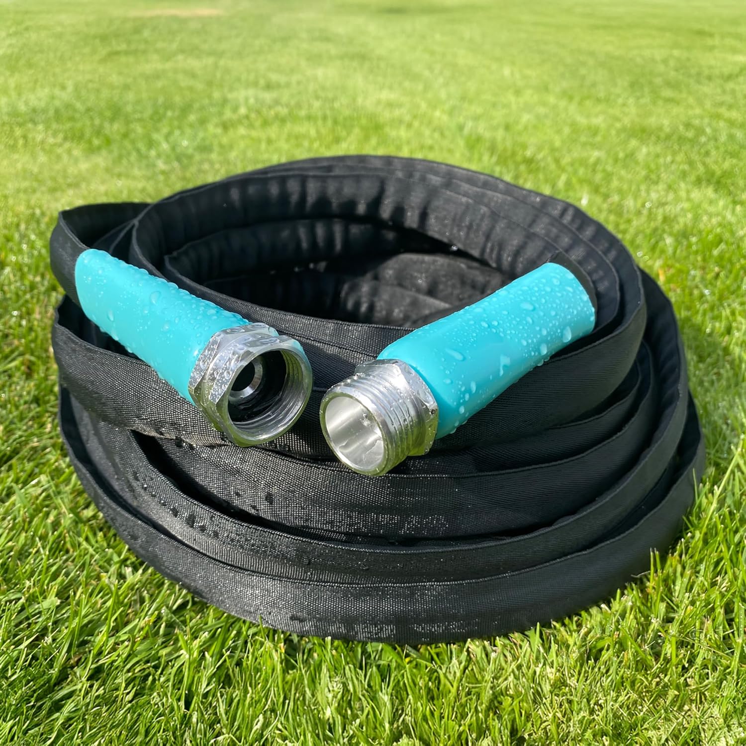 Flat Garden Hose (100 foot x 5/8 inch) Lightweight, Durable Fiber Jacket, Flexible & Kink Free, Non-Expandable Water Hose, Easy Handling in All-Weather Conditions, 700010 by New England Garden Tools